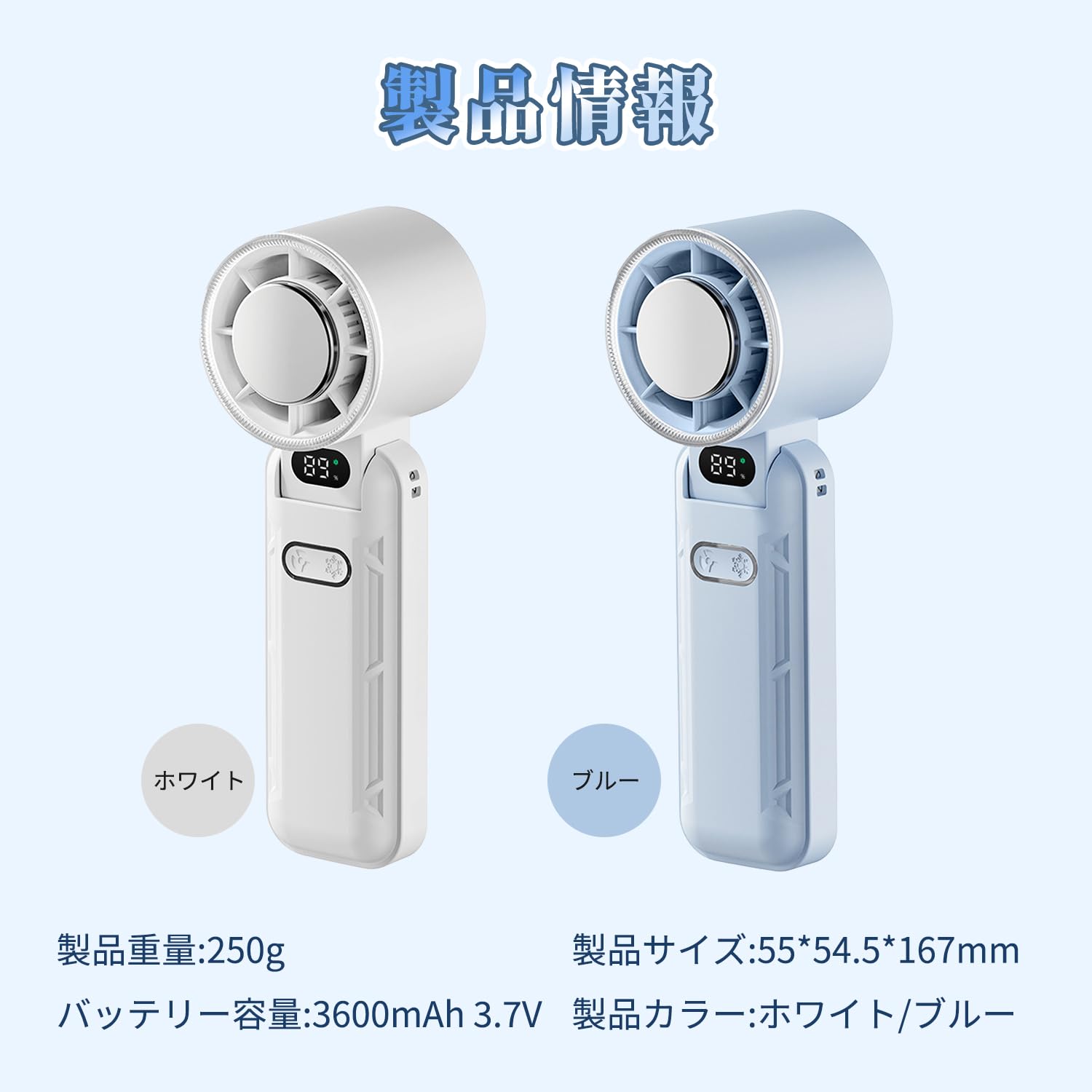 ハンディファン 【2024モデル・PSE認証済】扇風機 ハンディ 携帯扇風機 手持ち扇風機 5200mAhモバイルバッテリ内蔵 LED電池残量表示 6段階風量調節 20dB静音 Type-C充電 折り畳み式 ミニ扇風機 首掛け 小型 持ち運び扇風機 モバイルバッテリ用/熱中症対策/プレゼント/旅行/自宅/通勤/花火大会ど適用 シンプル 日本語説明書付き (Blue)
