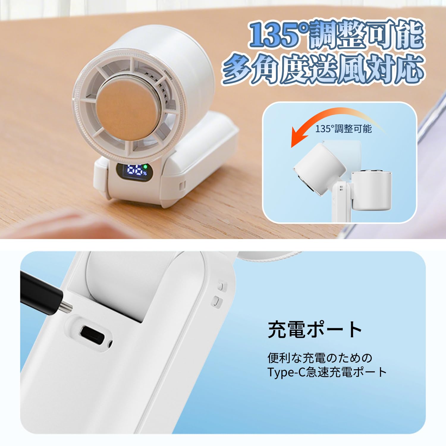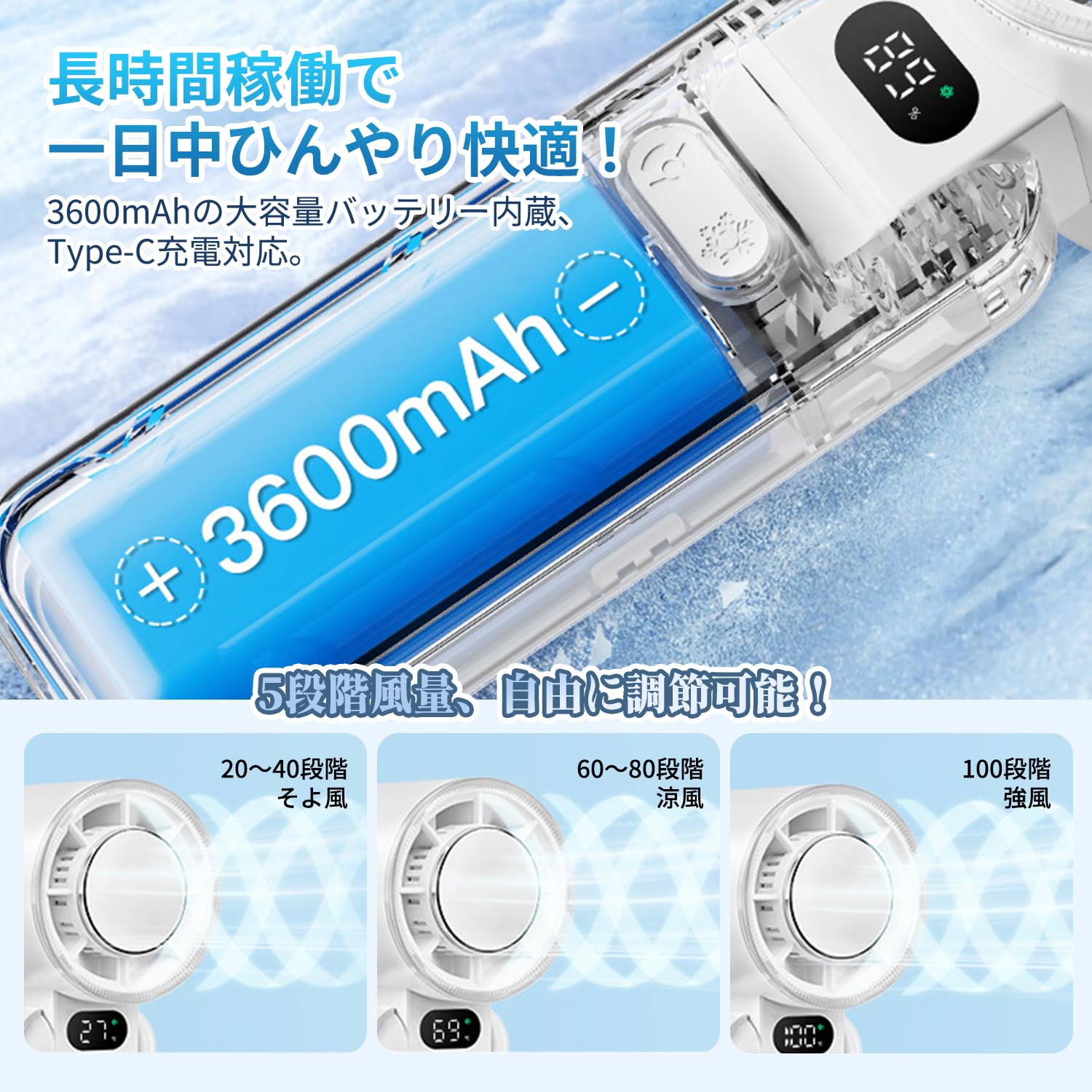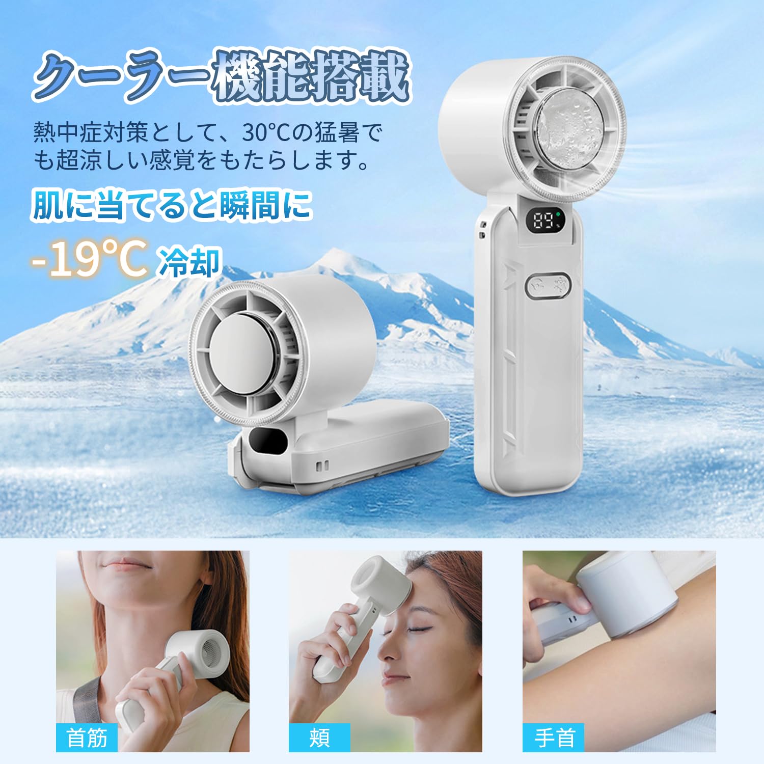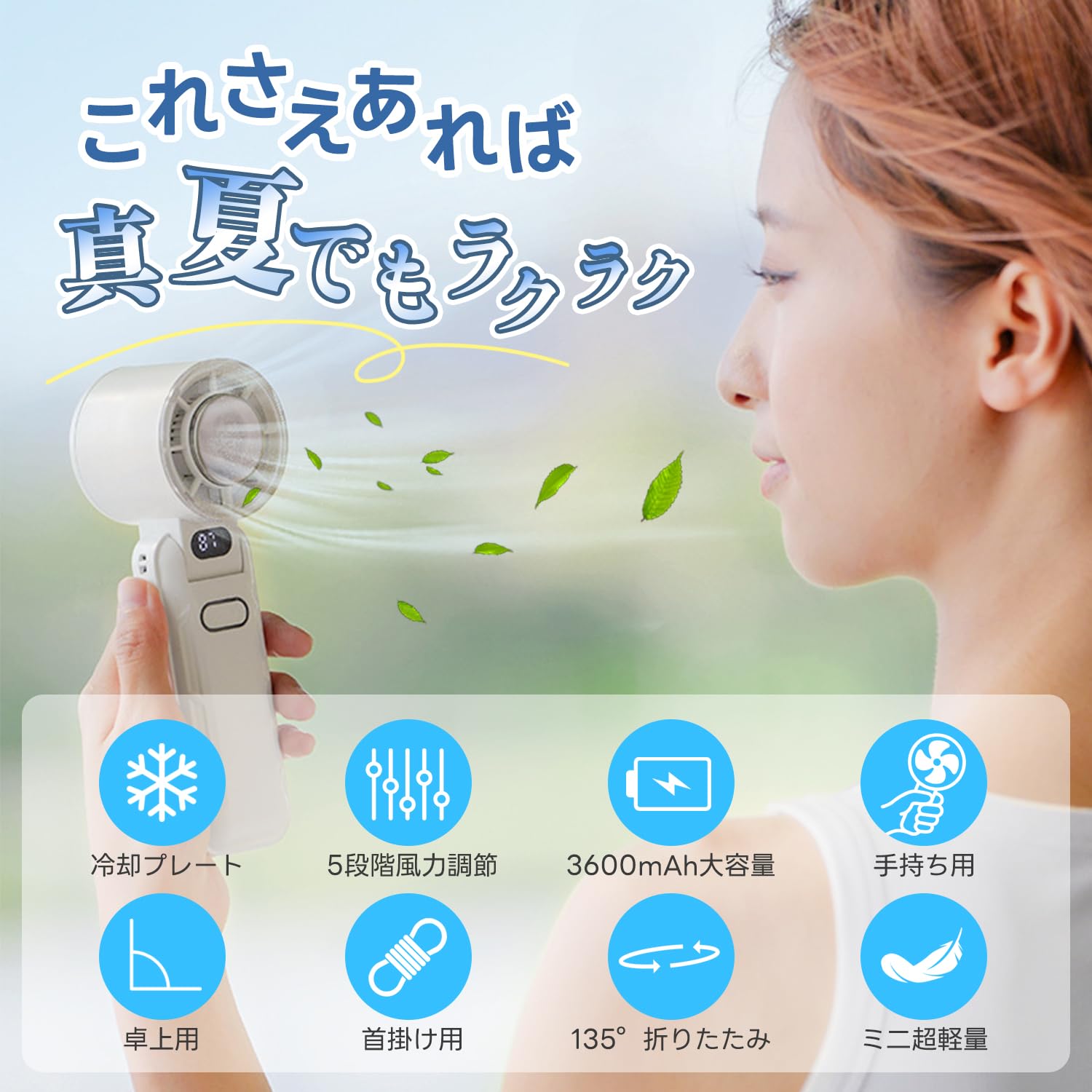 【2025-20℃瞬間冷却】ハンドヘルドファン,ヒートシンクポータブルファン,大風量内蔵冷却プレート,1-199無段階調整4000mAh大容量Type-C急速充電LEDディスプレイ残量ディスプレイ小型ミニファン,小型ミニファン首掛け/デスクトップ/手持ち、折りたたみ可能、通勤や学校、アウトドアキャンプに最適、熱中症防止、オフィス/スポーツ観戦/花火大会/ギフトに適用(白色)