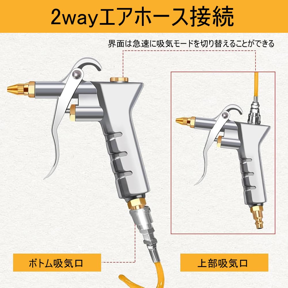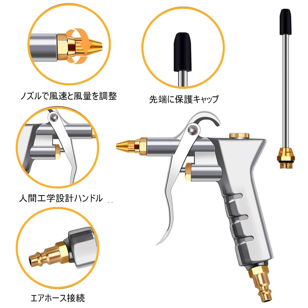 エアダスター エアーガン エアブローガン 2way エア漏れ防止 流量調整ノズル 低音ノズル 130mmロングノズル 増風ノズル4つ付きセット