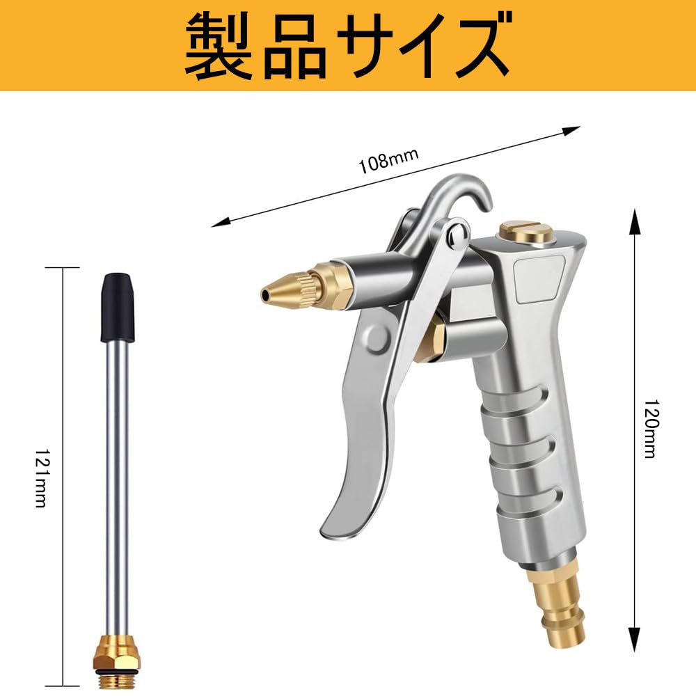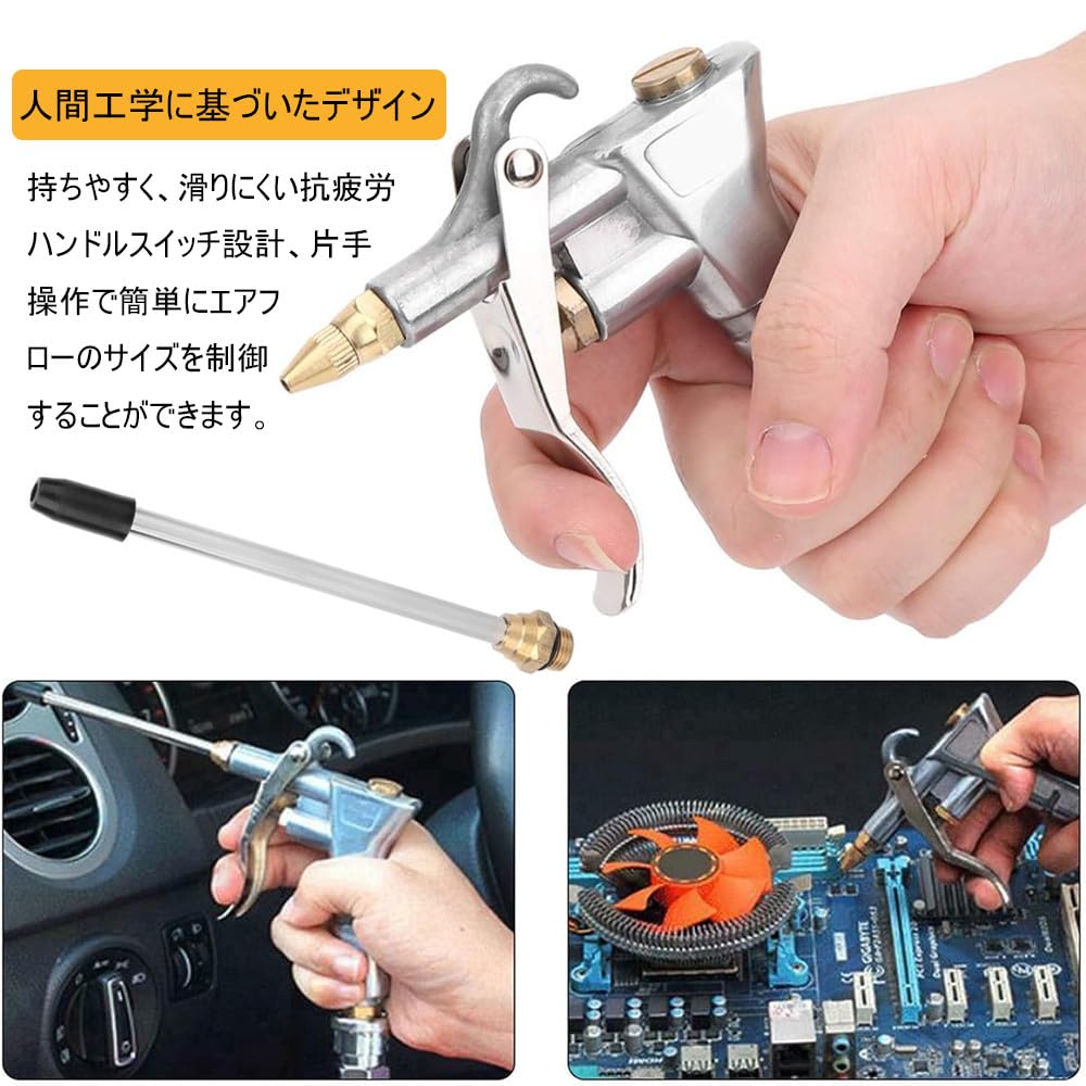 エアダスター エアブローガン エアーガン 130mmロングノズル付き 組み合わせ 空気圧ツール エアーガン 流量調整可能 増風ノズル3種セット エア漏れ防止機能付き