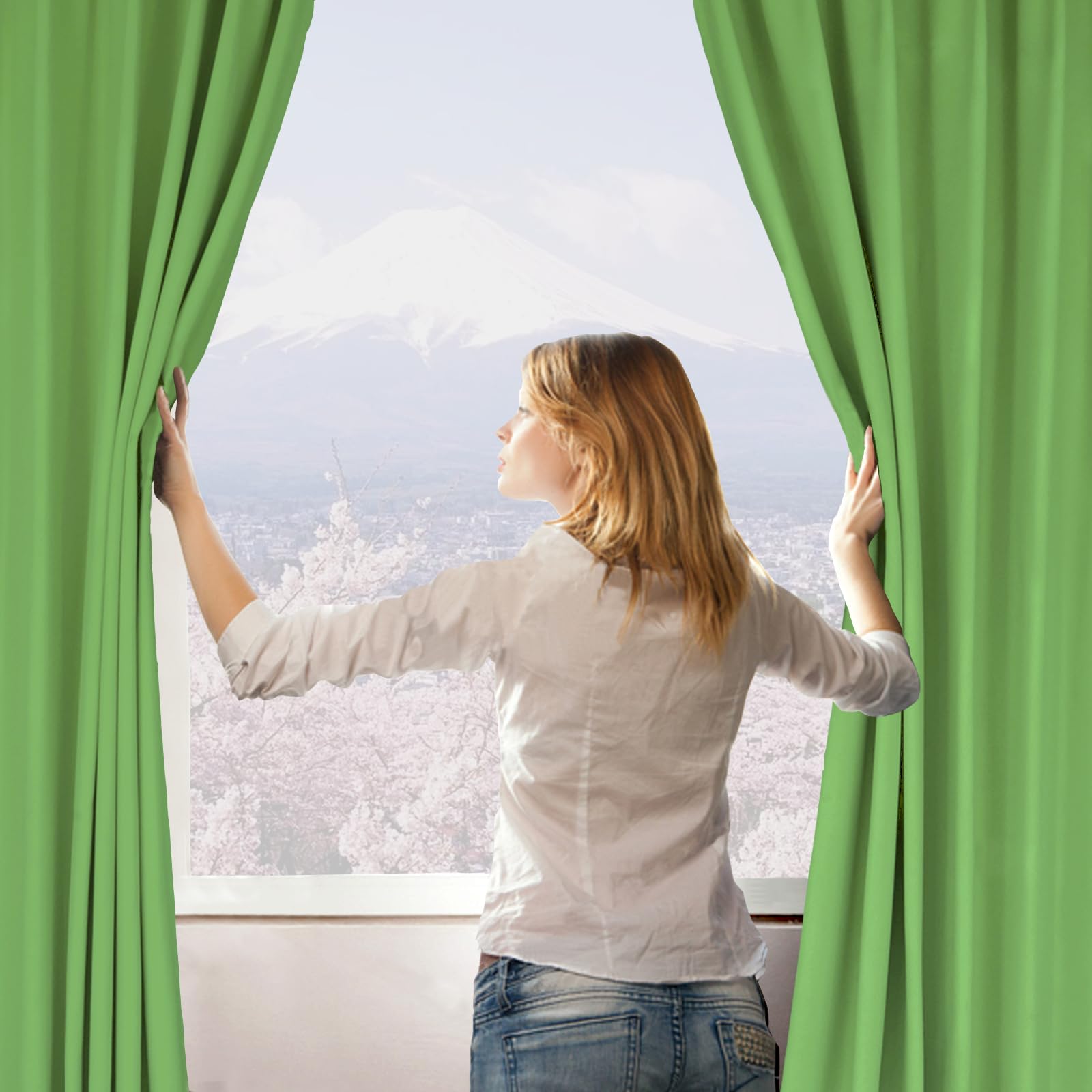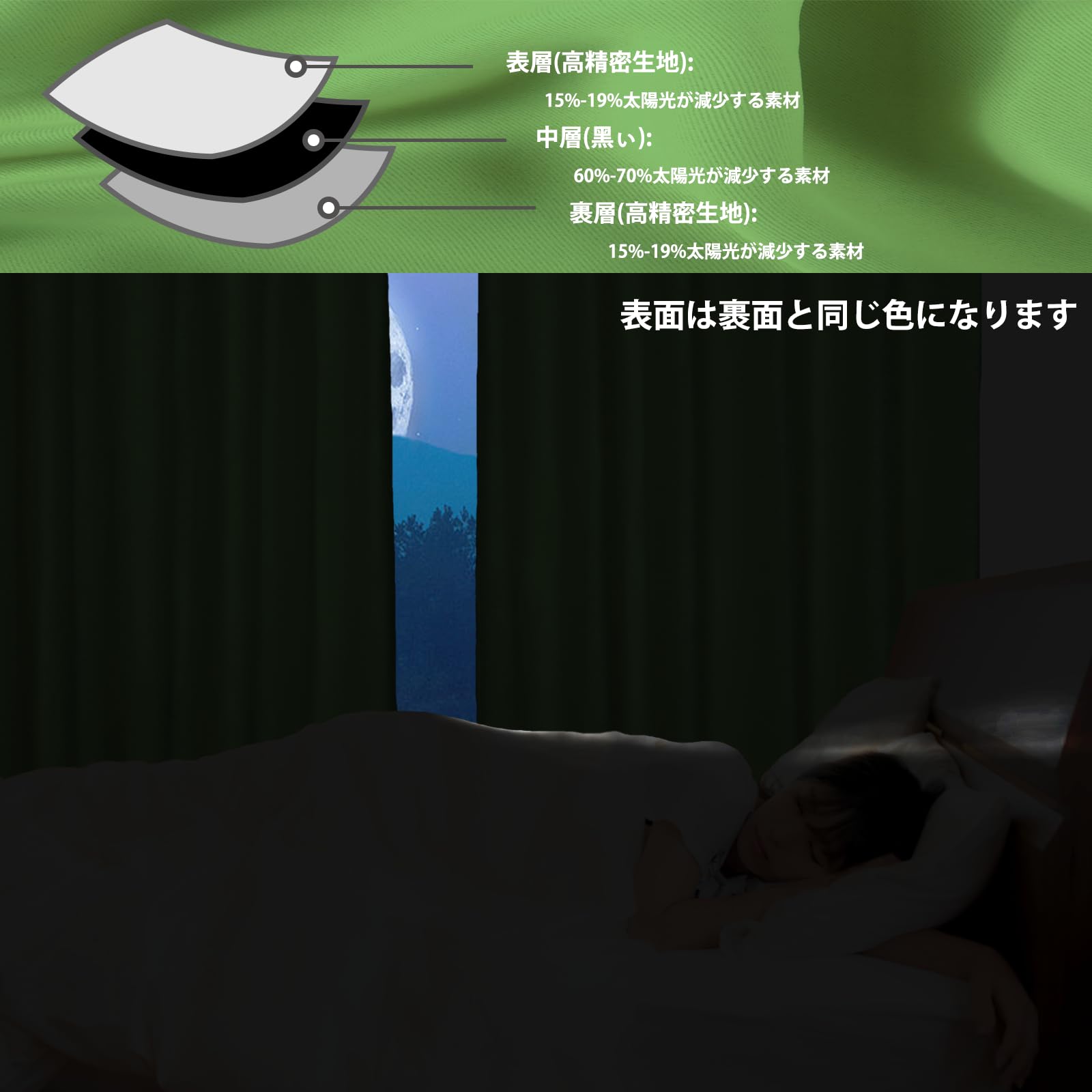 【Yunlinhui】一级遮光カーテン2枚組 無地 厚手のカーテンは効果的な断熱 保温 防音 吸音 ファッションカーテンには形態記憶加工が施されている 省エネ 洗濯可能 昼夜遮蔽 リビング用 寝室 部屋 コーヒーショップ 小窓 (幅100x丈178cm, グリーン)