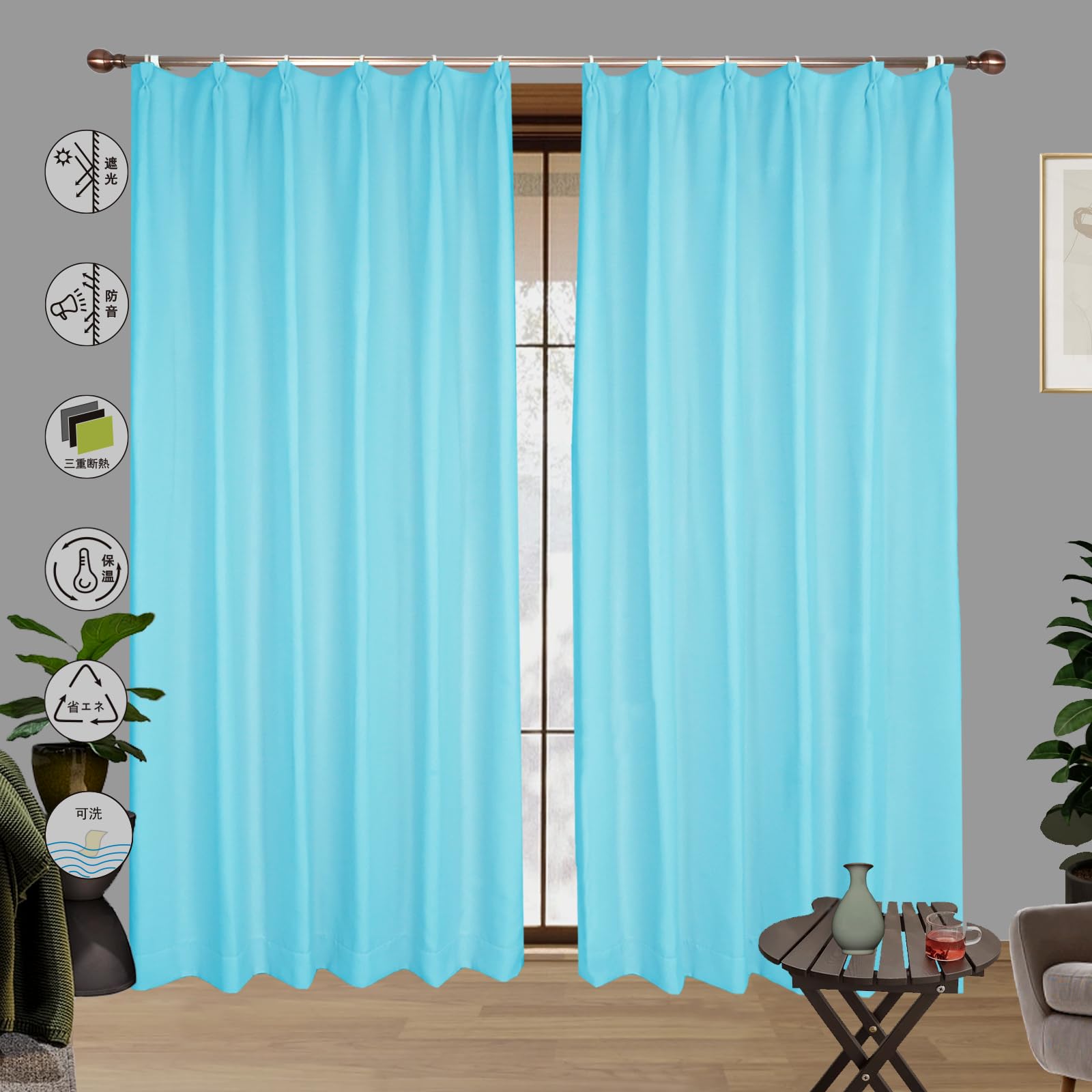 【Yunlinhui】一级遮光カーテン2枚組 無地 厚手のカーテンは効果的な断熱 保温 防音 吸音 ファッションカーテンには形態記憶加工が施されている 省エネ 洗濯可能 昼夜遮蔽 リビング用 寝室 部屋 コーヒーショップ 小窓