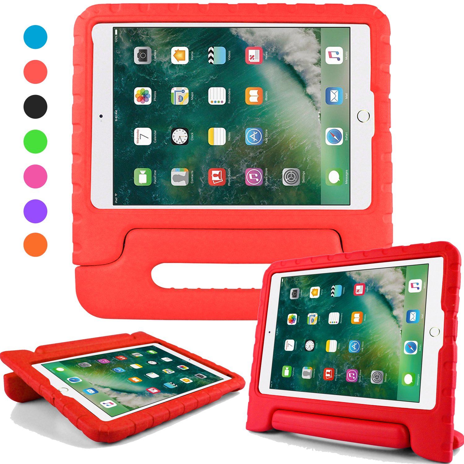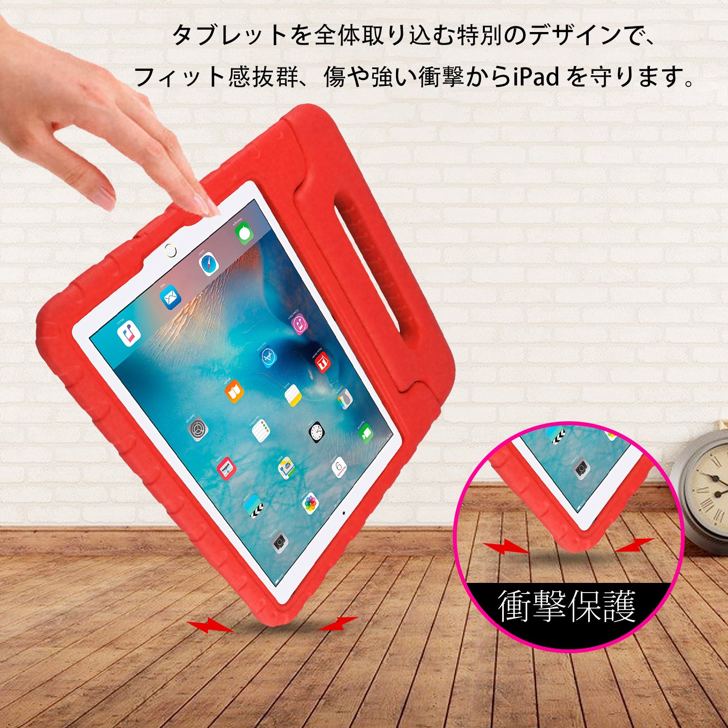 iPad 2018 ケース アイパッド 2017 9.7 ipad air2 ipad air ケース 超軽量 耐衝撃 スタンド ハンドル付き EVA キッズ 保護 新型 Apple iPad 9.7 2018 2017 カバー (レッド)