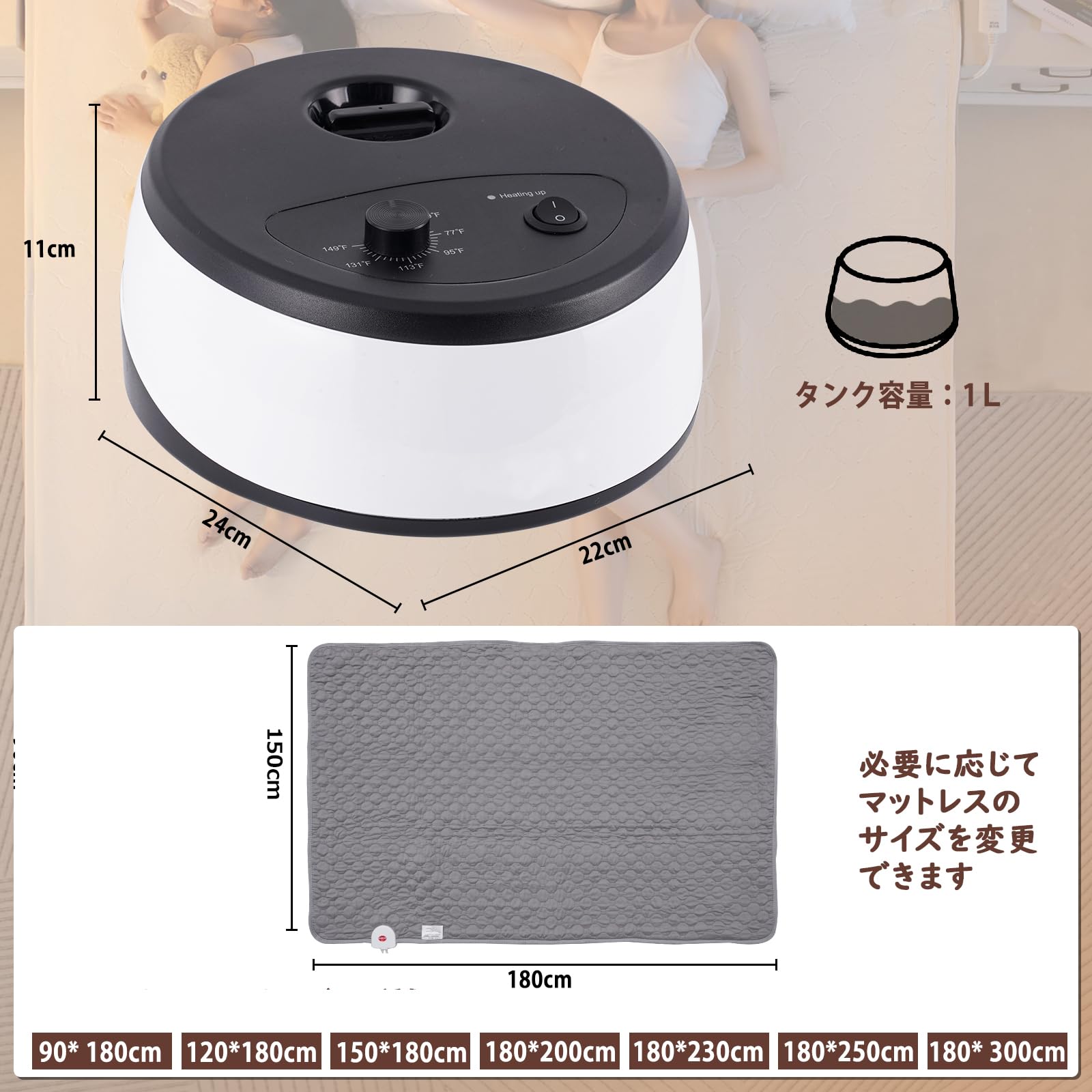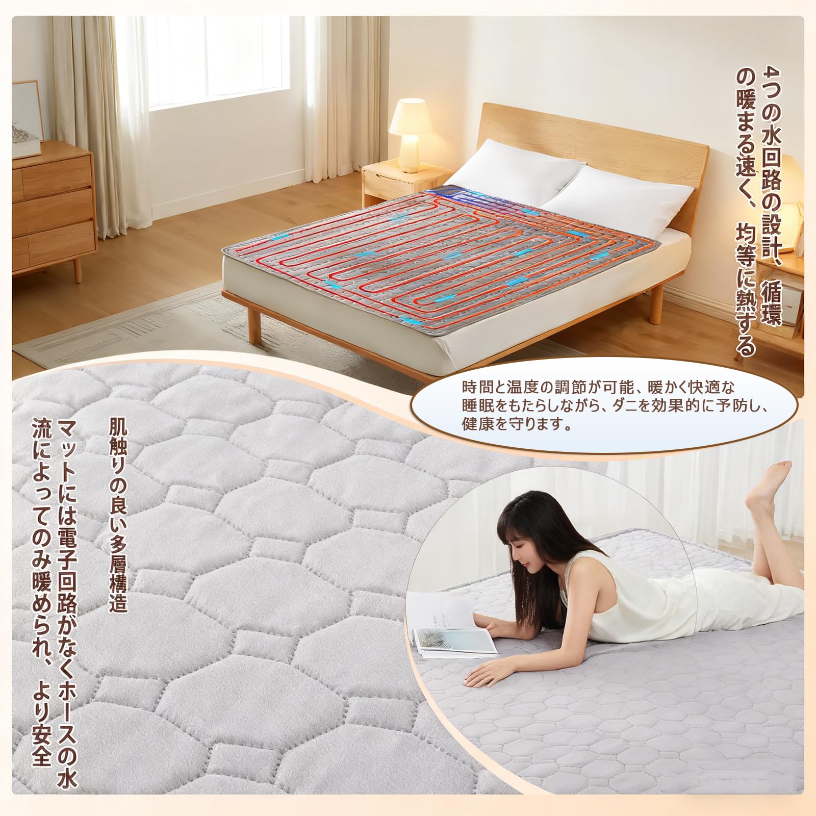 BAOSHISHAN 温水マット 温水循環マット ぽかぽか温水マット 150*180cm 温水暖房 快眠マットレス ウォーターマット 温水敷きふとん タイマー 温度調節可能 騒音≤20dB 電磁波なし 乾かない 水不足保護/高温保護/傾斜保護 恒温節電 110V 日本語説明書付き