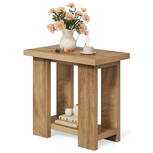 サイドテーブル ナイトテーブル 天然木 小さい おしゃれ 収納棚付き ベット用 リビング ソファサイド 一人暮らし カフェテーブル (40cm*30cm*54cm, ライトナチュラル)
