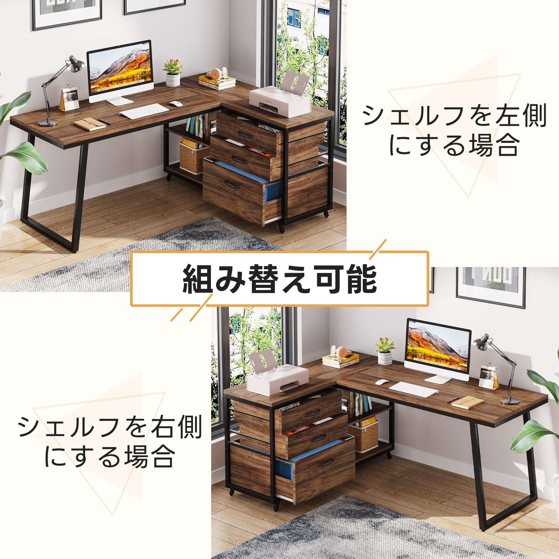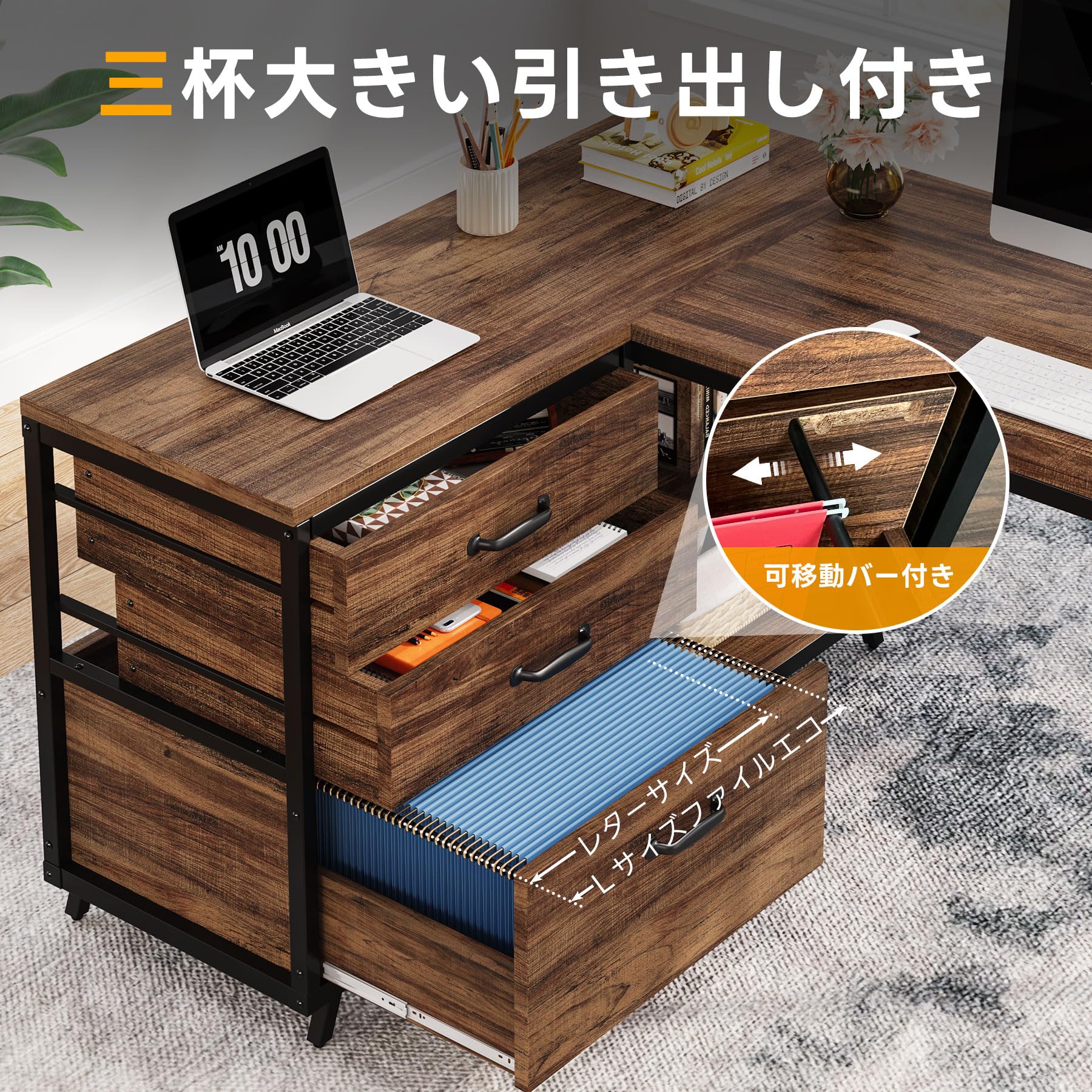 Tribesigns l字デスク パソコンデスク 引き出し付き 幅135cm ゲーミングデスク 机 pcデスク コーナー オフィス 事務用デスク 左右組み替え可能