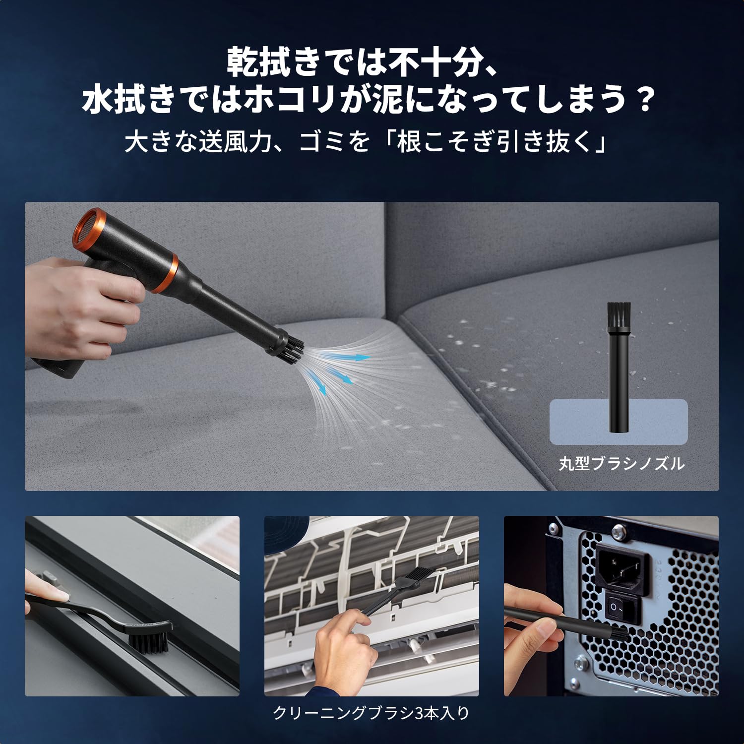 電動エアダスター エアダスター 超強力 無段階風量調整 USB充電式 小型 4種類ノズル付き ブラシ*3