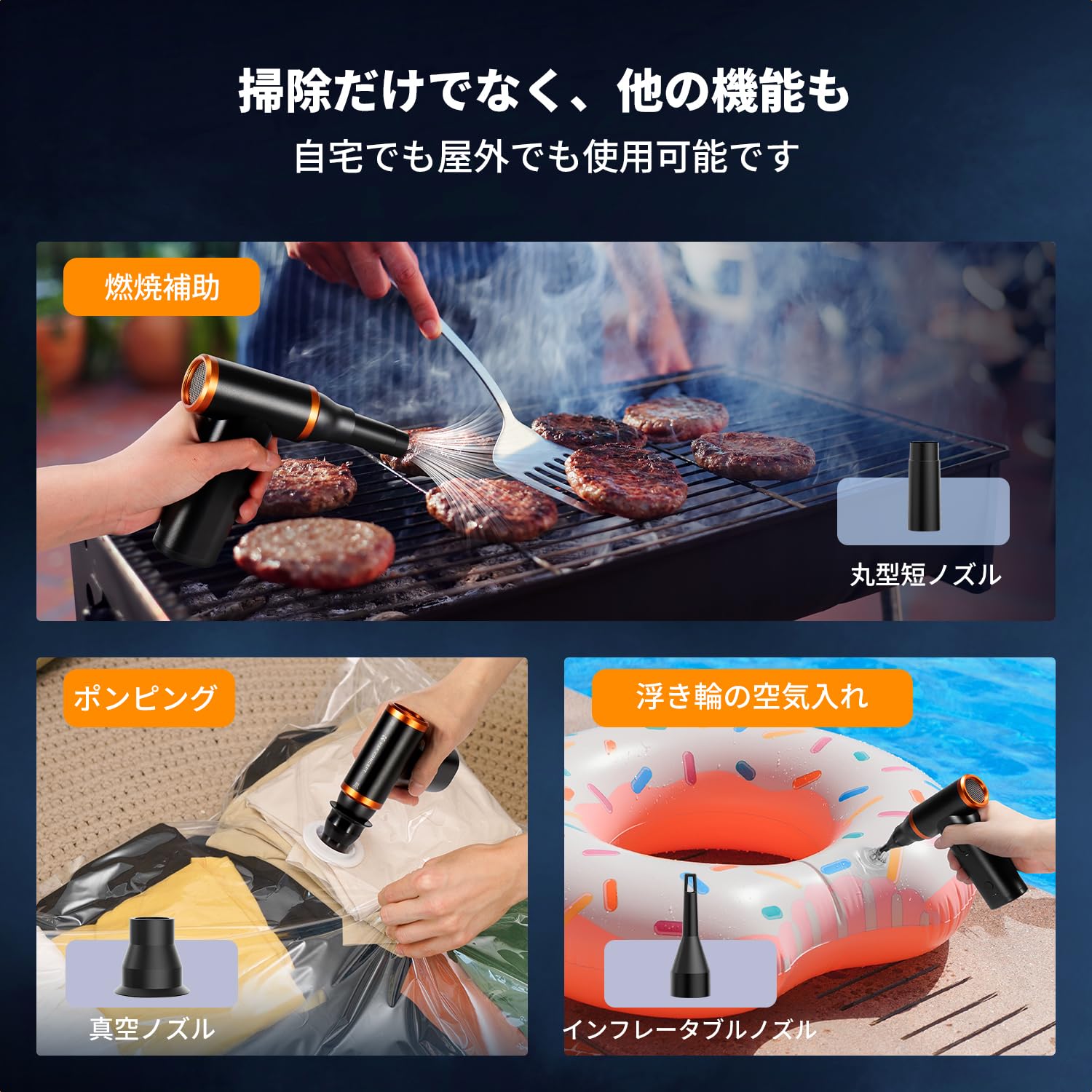 エアダスター 電動エアダスター 強力 90000RPM ブラシレスモーター 3段階風力調整 LEDライト7500mAh TYPE-C充電 5種類ノズル付き ブラシ*3 空気入れ