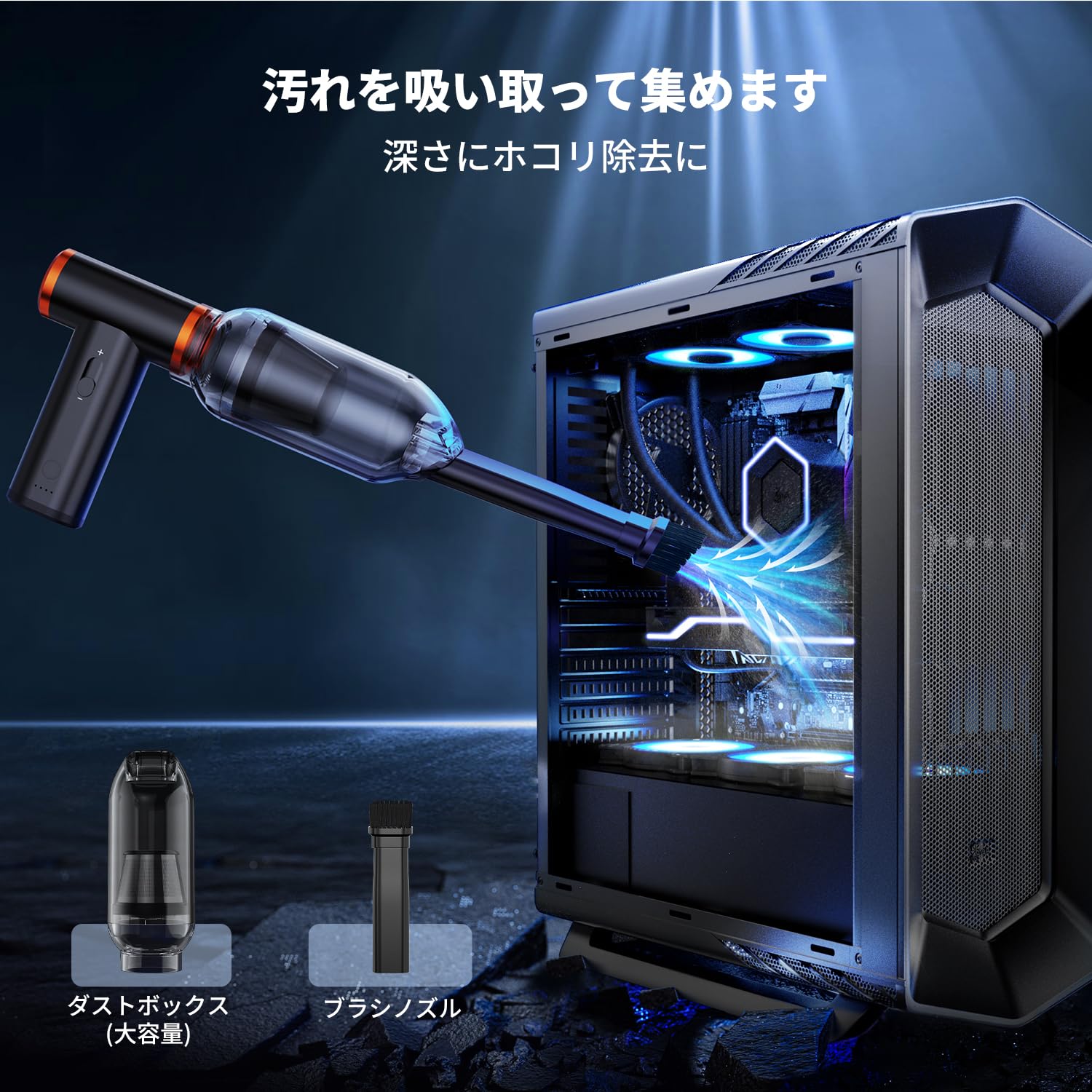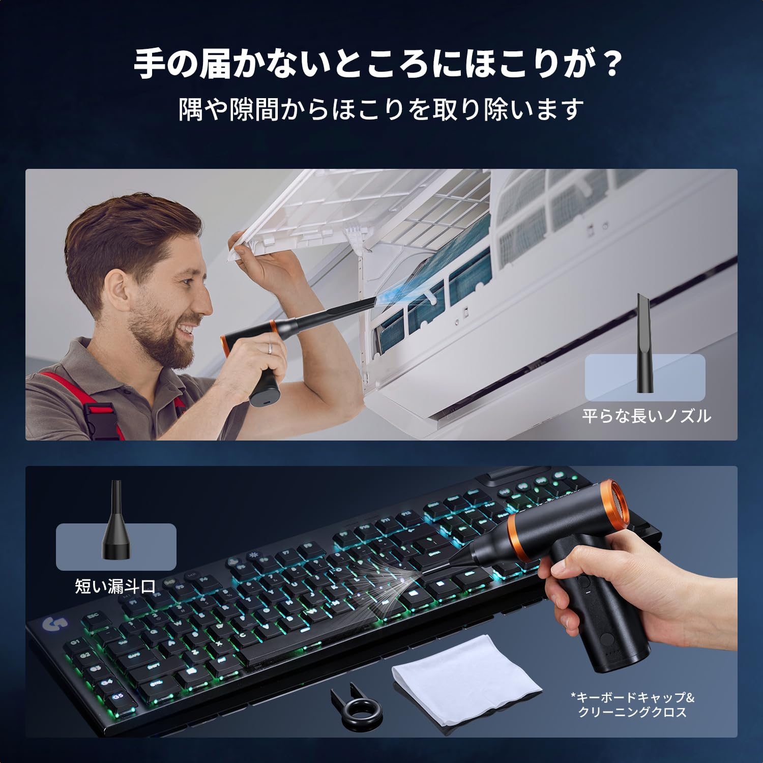 エアダスター 電動エアダスター 無段階風量調整 超強力パワー 小型 多用途(PC 掃除/キーボード/車内/エアコン)