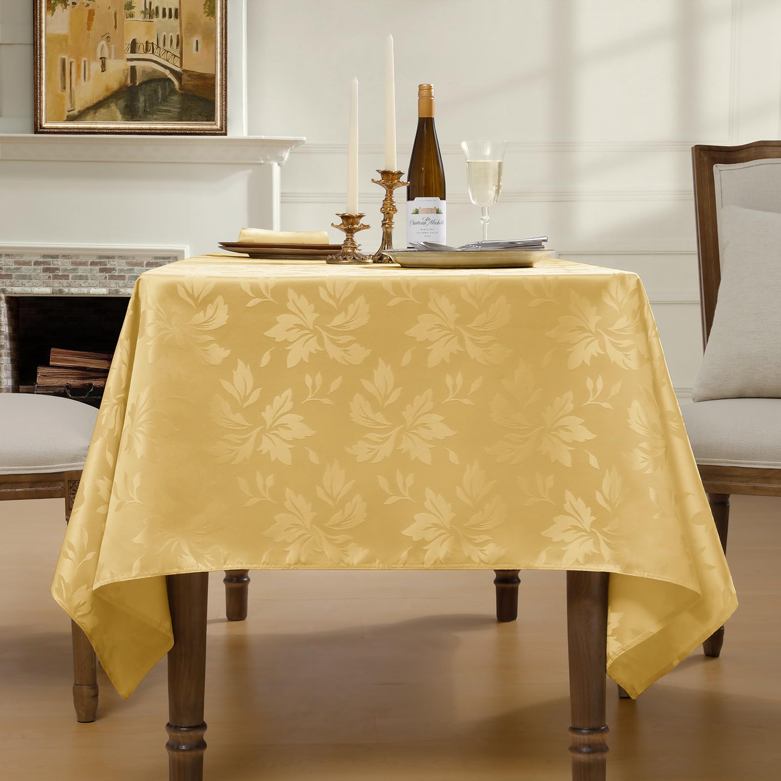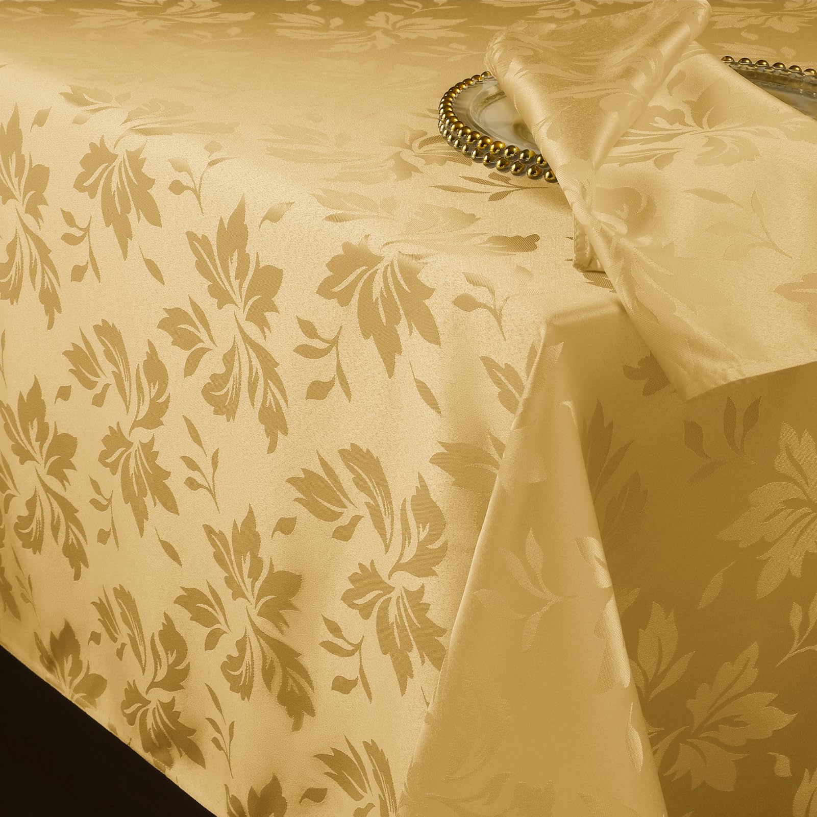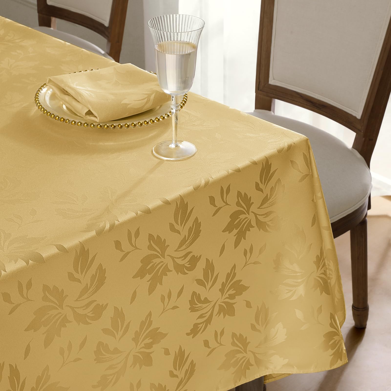 Softalker テーブルクロス クリスマス ゴールド長方形 140×180cm 撥水 花柄 ジャカードテーブルクロス- 防水 防汚 耐熱 滑り止め お手入れ簡単 無地 北欧風 厚手桌布 家庭用/カフェ/クリスマス/パーティー/イベント/正月用 Table cloth