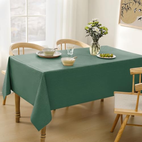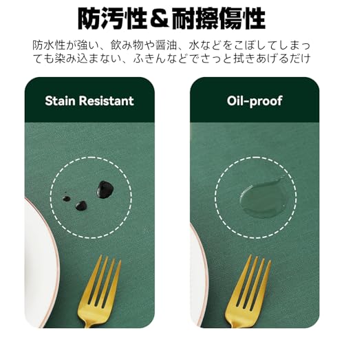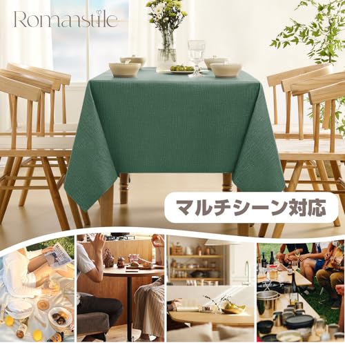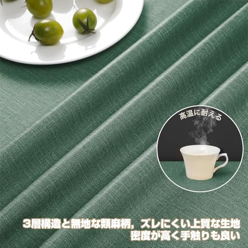 Romanstile テーブルクロス クリスマス 緑 おしゃれ ビニール 撥水 厚手 長方形 140×180cm PVC 防水 防油 汚れ防止 麻布風 桌布 テーブルカバー table cloth 大判 カット可能 長さ調節可 お手入れ簡単 耐久 耐熱 食卓 装飾 北欧 ダイニング キッチン カフェ レストラン パーティー お正月 ダークグリーン
