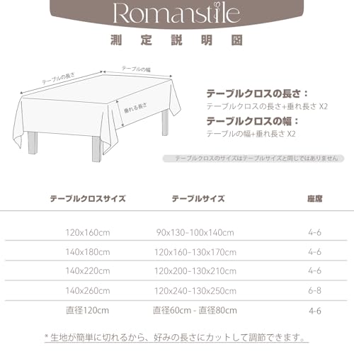 Softalker テーブルクロス 撥水加工 類麻 汚れ防止 お手入れ簡単 無地 布 テーブルマット 長方形 高耐久 防水 防油 おしゃれ 北欧風 家庭用 業務用 机カバー 食卓カバー 140×220cm ベージュ Tablecloth