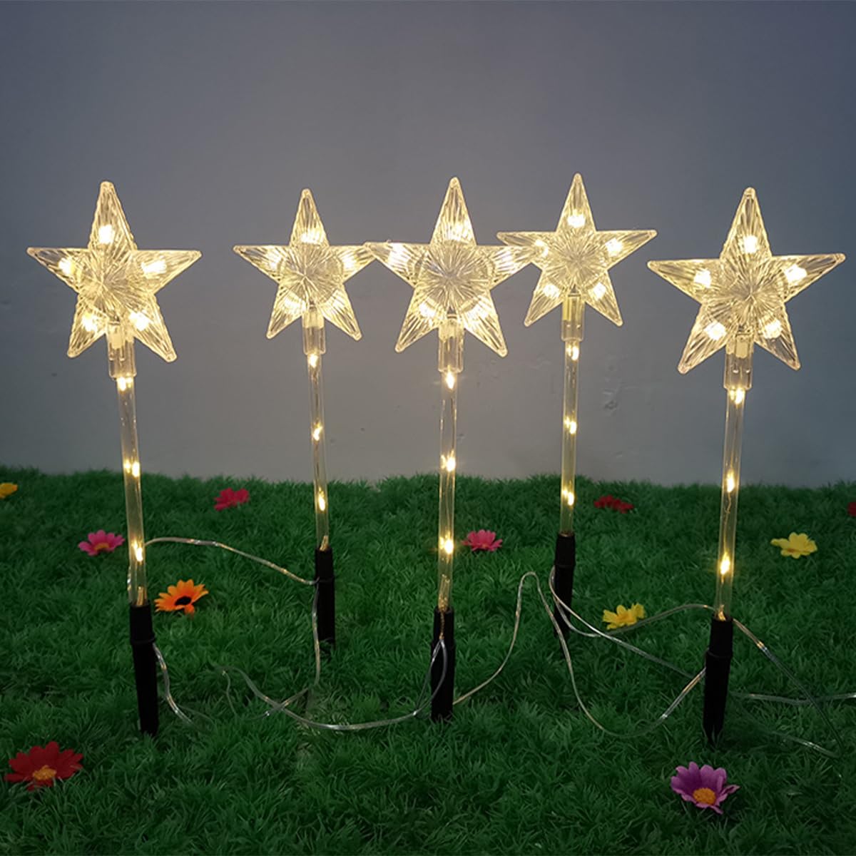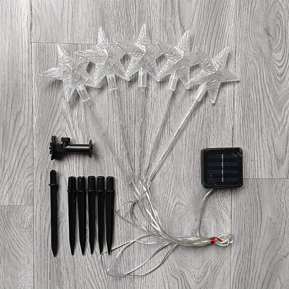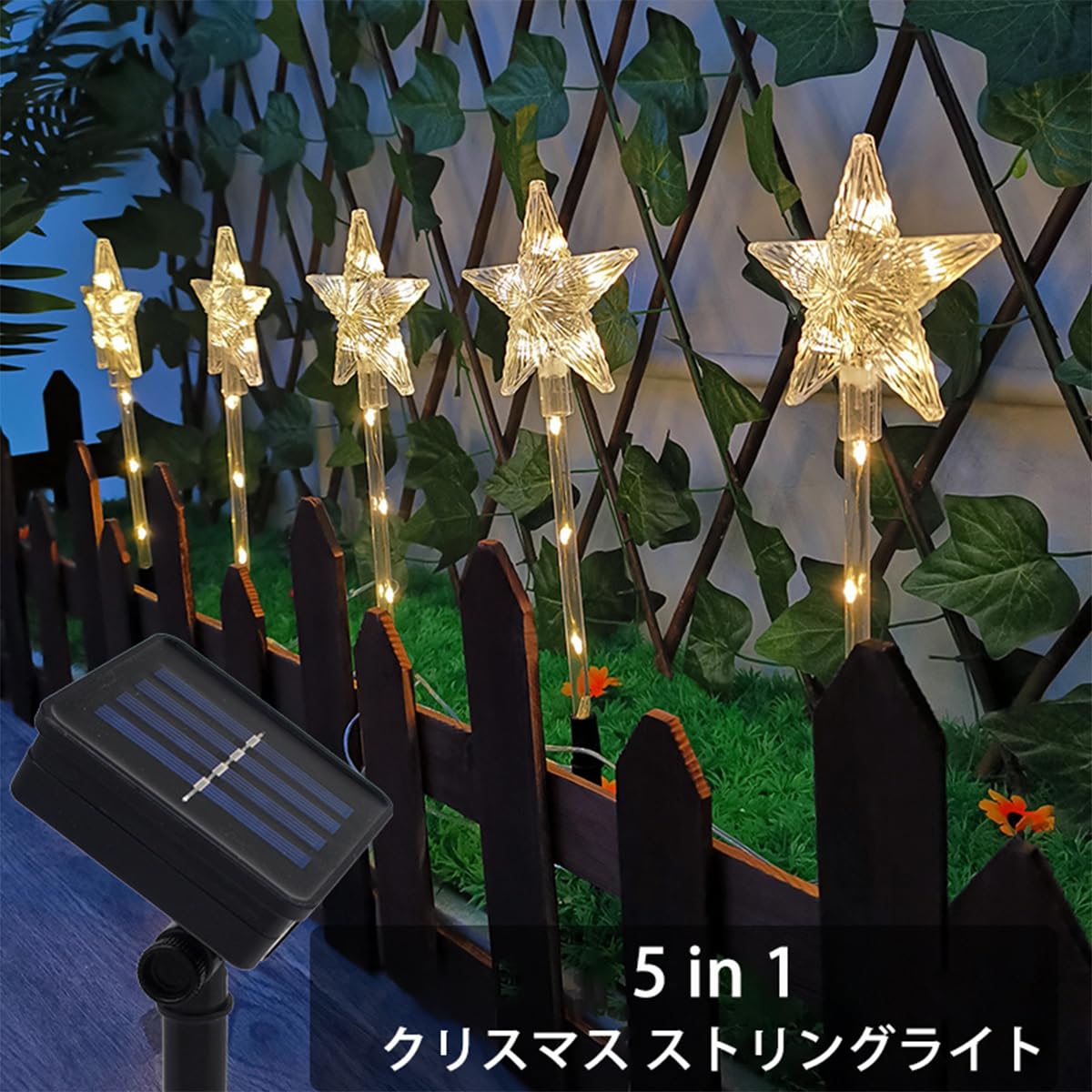 Lanito クリスマスライト ソーラーガーデンライト 屋外 5 in 1 クリスマス ストリングライト クリスマス装飾ライト 星 ライト 埋込み式 夜間自動点灯 8種類モード IP65防水 庭飾り クリスマス飾り (暖かい白)