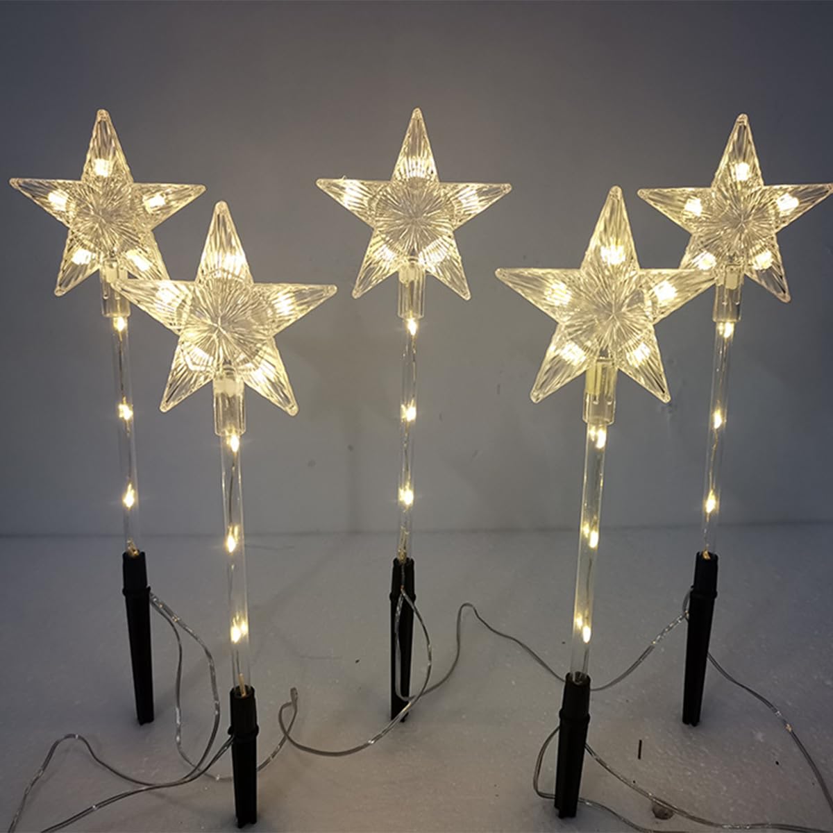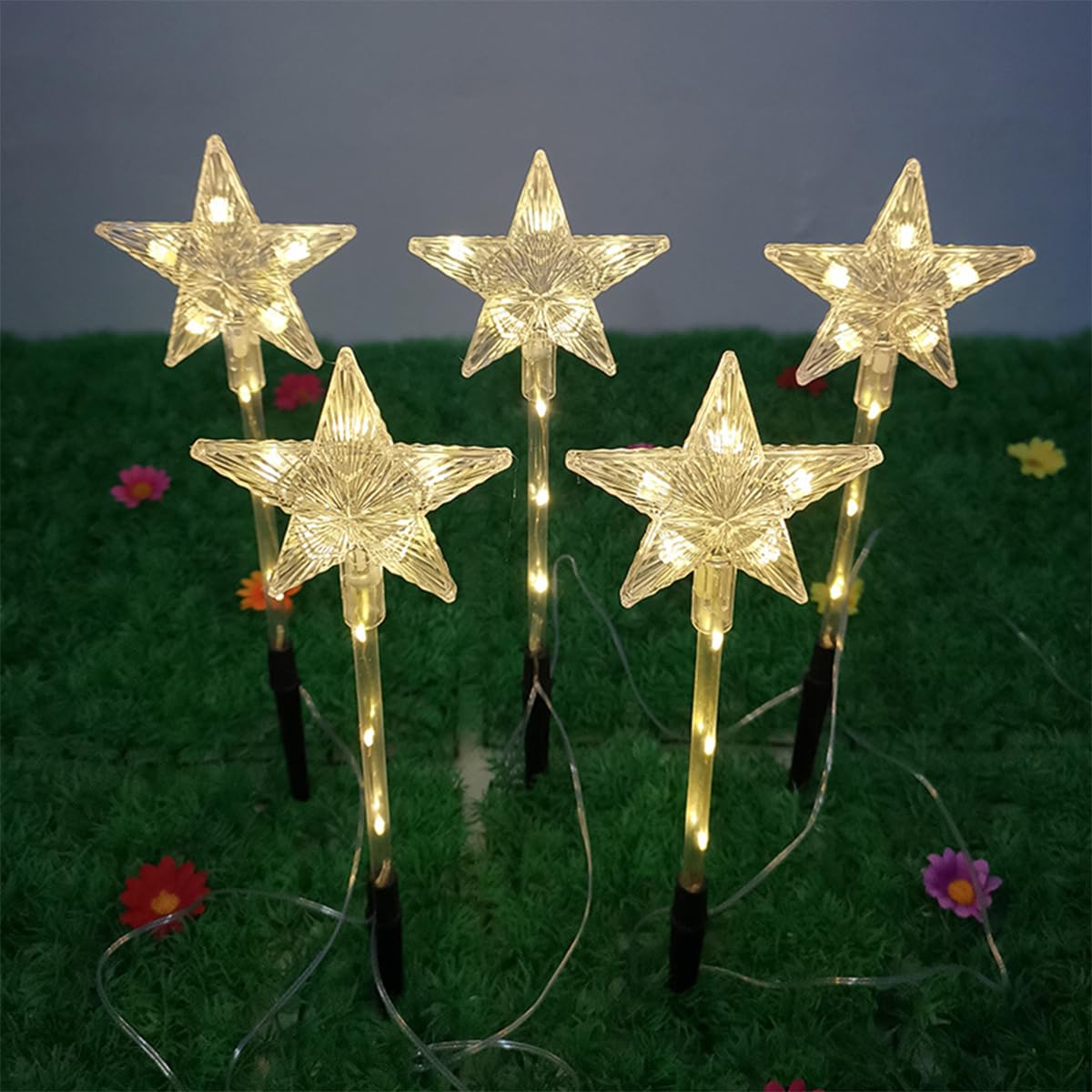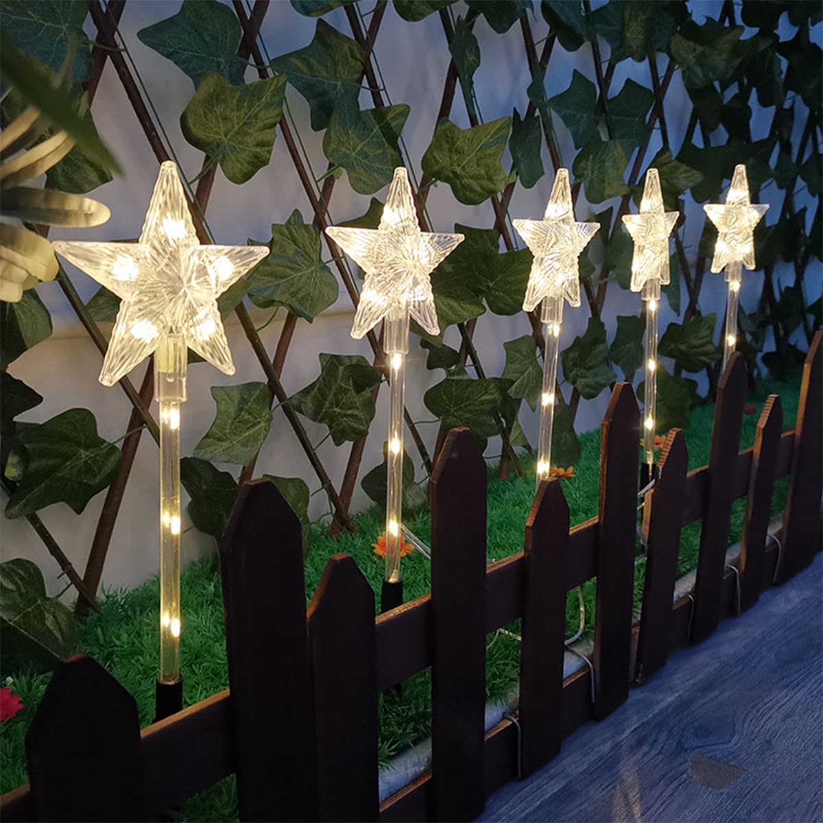Lanito クリスマスライト ソーラーガーデンライト 屋外 5 in 1 クリスマス ストリングライト クリスマス装飾ライト 星 ライト 埋込み式 夜間自動点灯 8種類モード IP65防水 庭飾り クリスマス飾り (暖かい白)