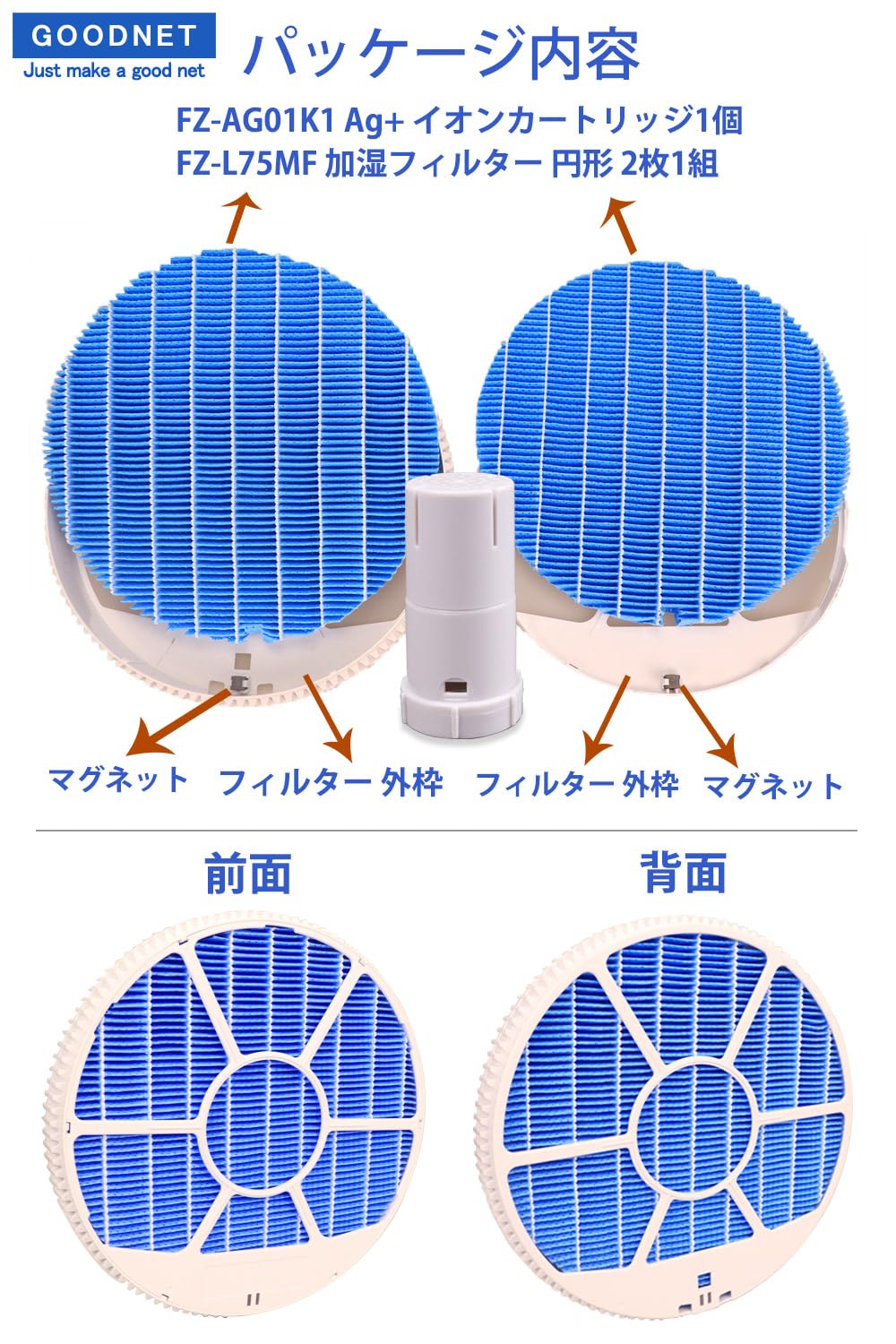 GOODNET FZ-L75MF 加湿フィルター 枠付き KI-LX75 KI-PX75 KI-RX75 KI-NS50 KI-RS50 KI-PS50 KI-RX70 加湿空気清浄機用 フィルター と FZ-AG01K1 Ag+ イオンカートリッジ 抗菌99.9%以上 互換品 2点セット