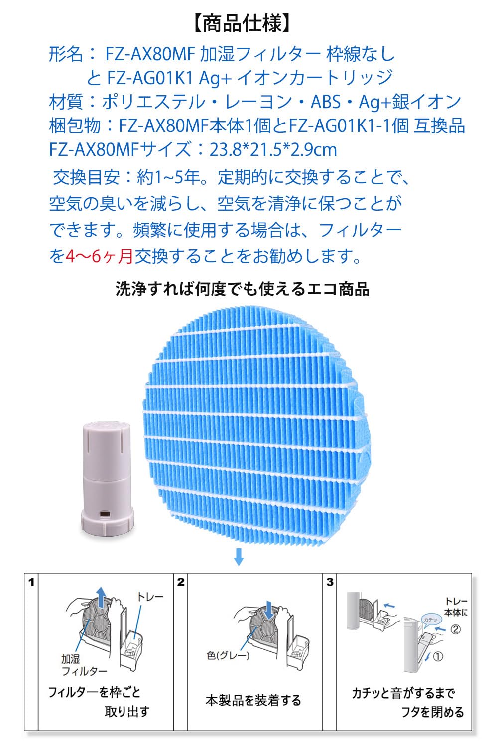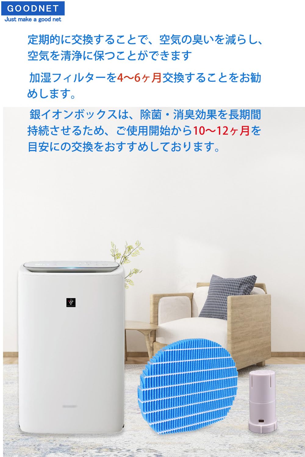 GOODNET FZ-AX80MF 加湿フィルター 枠なし 1個入り と FZ-AG01K1 Ag+ イオンカートリッジ 抗菌 99.9%以上 KI-JX75 KI-GX75 KI-HX75 KI-EX75 KI-WF75 KC-GD70 KI-DX70 KC-HD70 加湿空気清浄機用 フィルター 互換品 2点セット