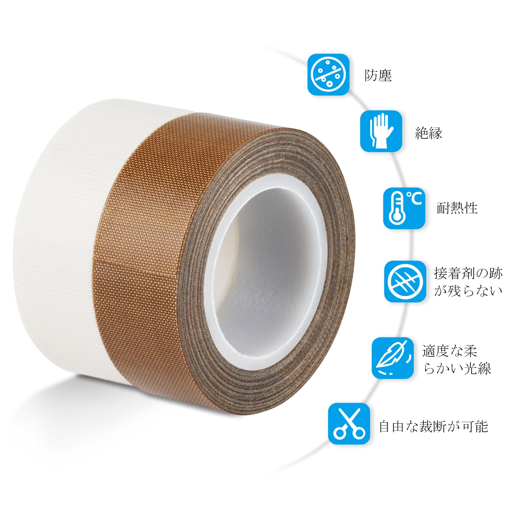 Meking led 減光 テフロンテープ 防眩 幅20mm×長10m 2巻入り 照明の眩しさを軽減 照明 遮光 テープ LEDライトの減光用 拡散シート 超強粘着力 耐熱 絶縁 防水 防塵 防油 (薄茶色)