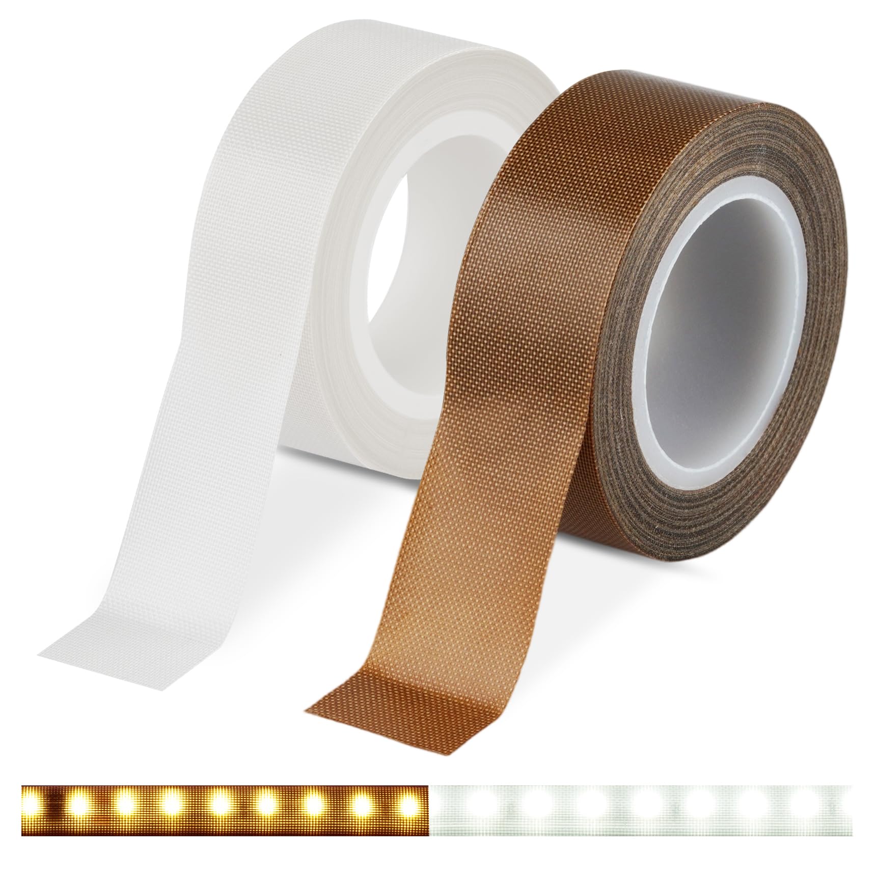 Meking led 減光 テフロンテープ 防眩 幅20mm×長10m 2巻入り 照明の眩しさを軽減 照明 遮光 テープ LEDライトの減光用 拡散シート 超強粘着力 耐熱 絶縁 防水 防塵 防油 (茶色とベージュ)