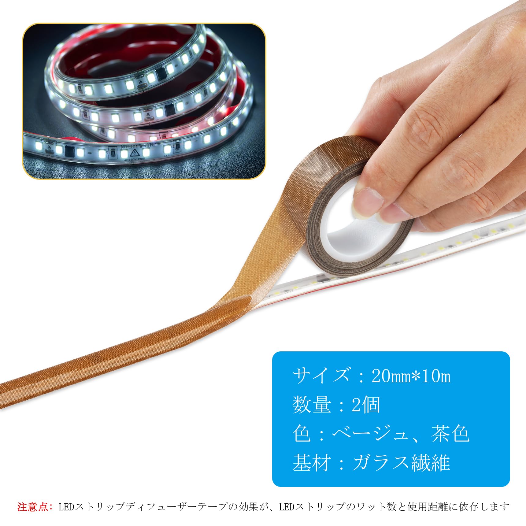 Selens led 減光 テフロンテープ 防眩 幅20mm×長10m 2巻入り 照明の眩しさを軽減 照明 遮光 テープ LEDライトの減光用 拡散シート 超強粘着力 耐熱 絶縁 防水 防塵 防油 (茶色とベージュ)