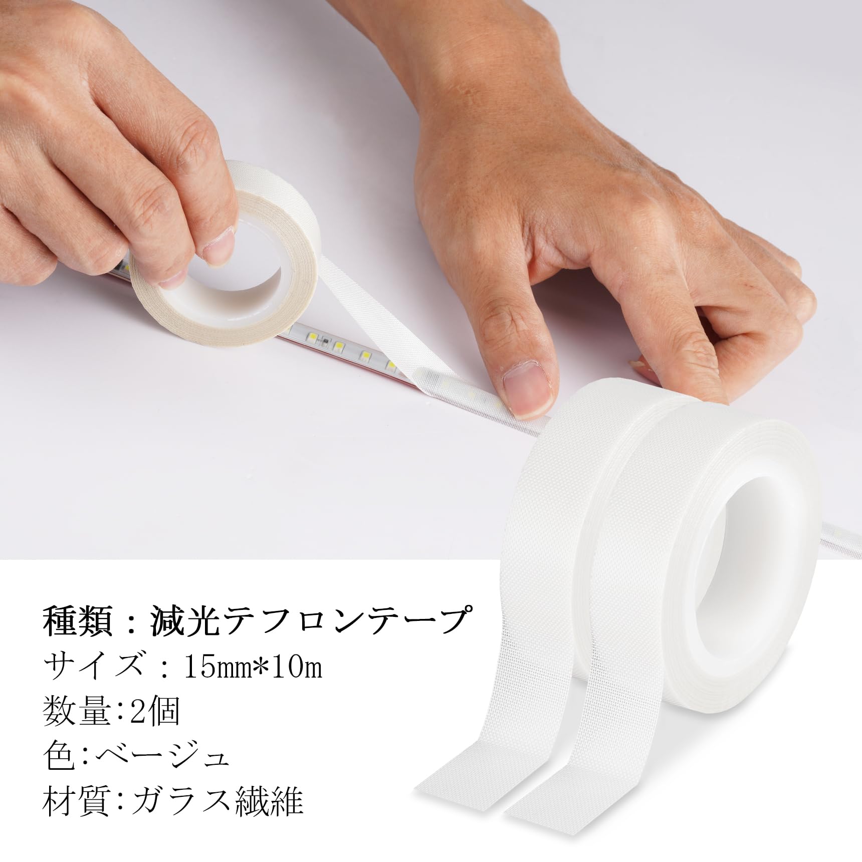 Selens led 減光 テフロンテープ 幅15mm×長10m 耐熱 絶縁 2巻入り 防眩 照明の眩しさを軽減 遮光粘着テープ LED 拡散シート 超強粘着力 防水 防塵 防油 (ベージュ)