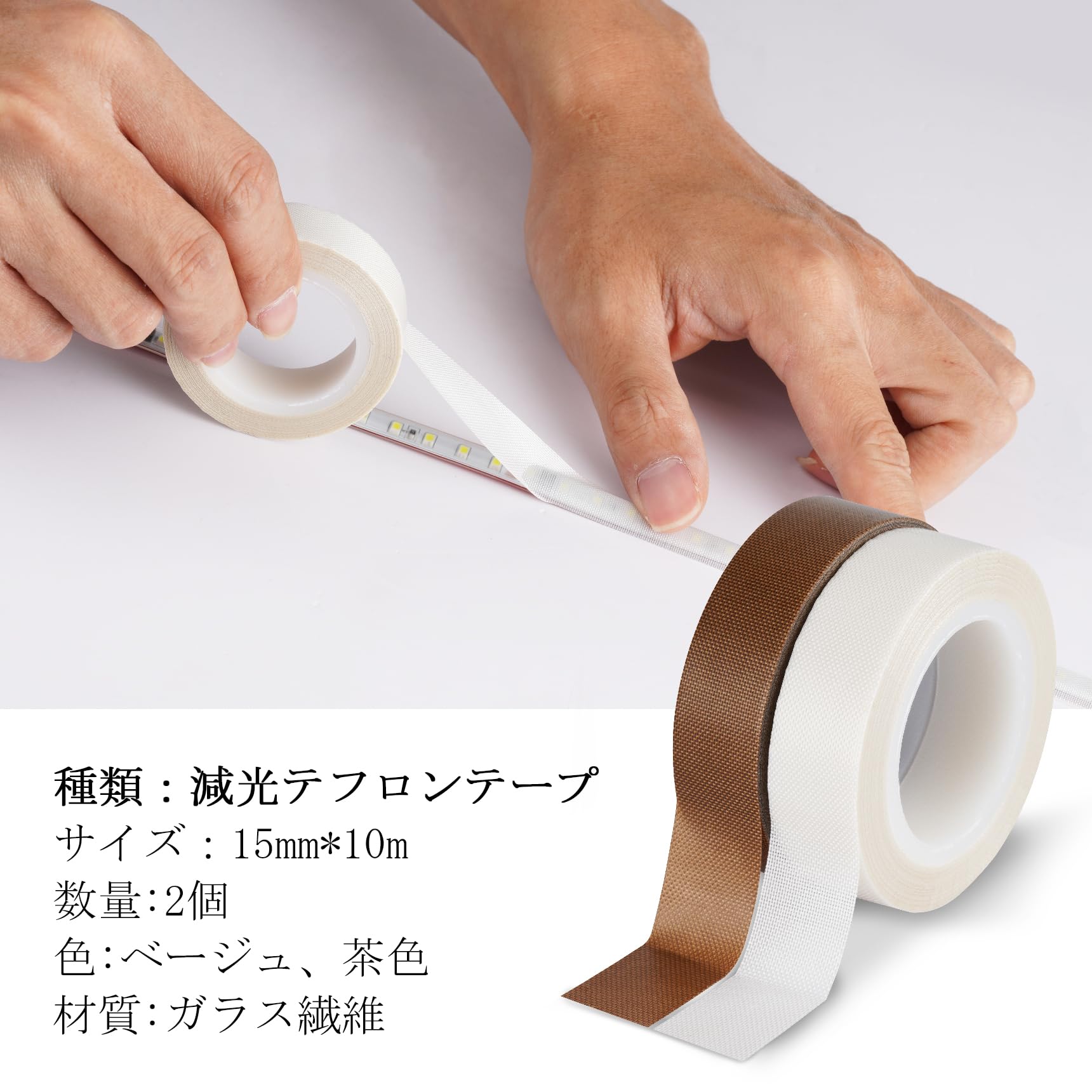 Selens led 減光 テフロンテープ 幅15mm×長10m 耐熱 絶縁 2巻入り 防眩 照明の眩しさを軽減 遮光粘着テープ LED 拡散シート 超強粘着力 防水 防塵 防油 (茶色とベージュ)