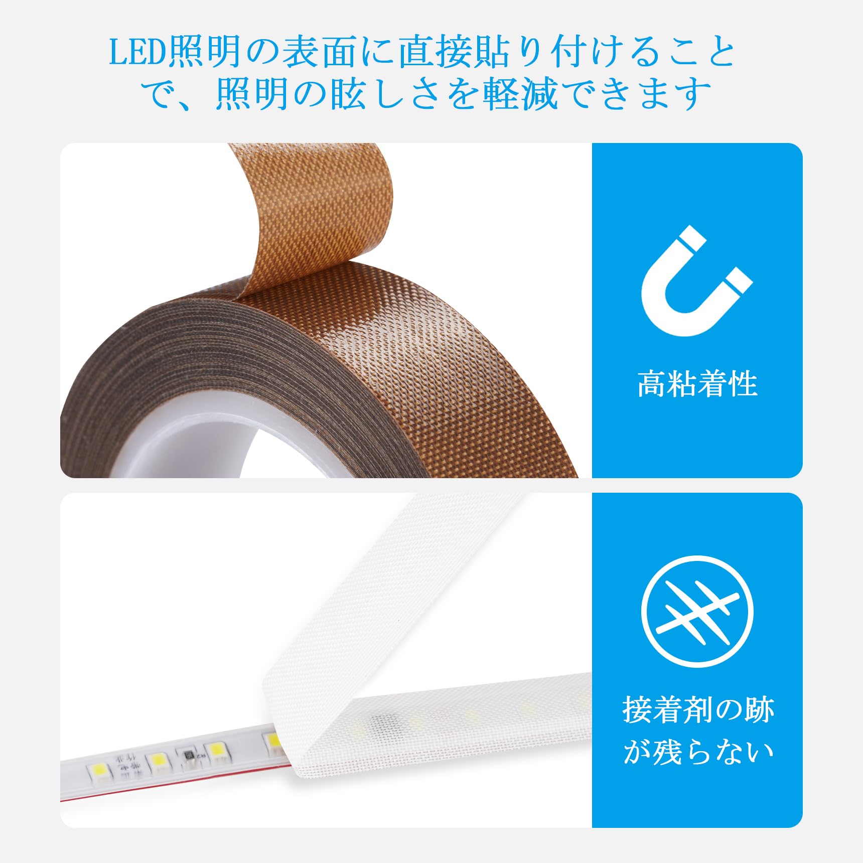 Selens led 減光 テフロンテープ 防眩 幅20mm×長10m 2巻入り 照明の眩しさを軽減 照明 遮光 テープ LEDライトの減光用 拡散シート 超強粘着力 耐熱 絶縁 防水 防塵 防油 (茶色)
