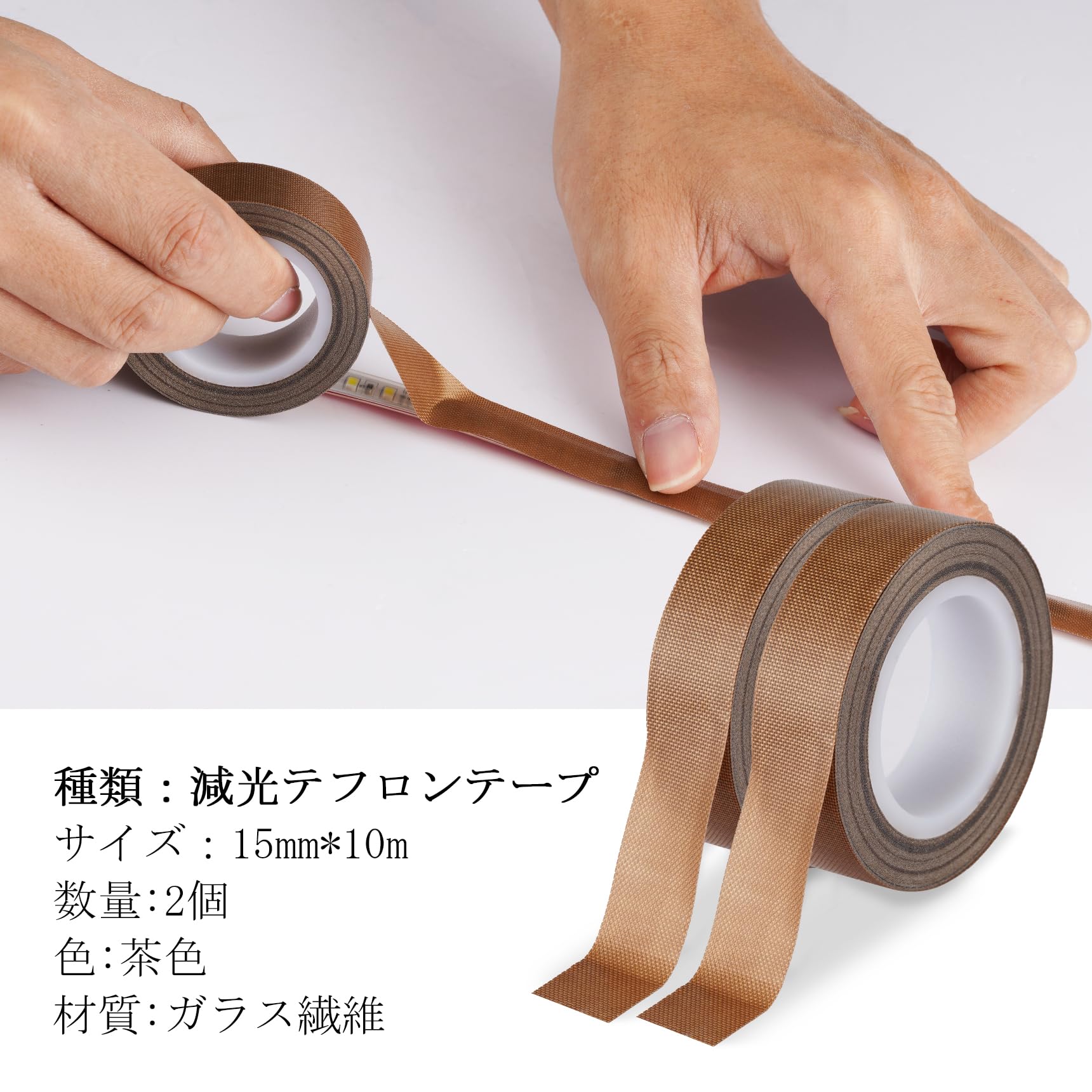 Selens led 減光 テフロンテープ 幅15mm×長10m 耐熱 絶縁 2巻入り 防眩 照明の眩しさを軽減 遮光粘着テープ LED 拡散シート 超強粘着力 防水 防塵 防油 (茶色)