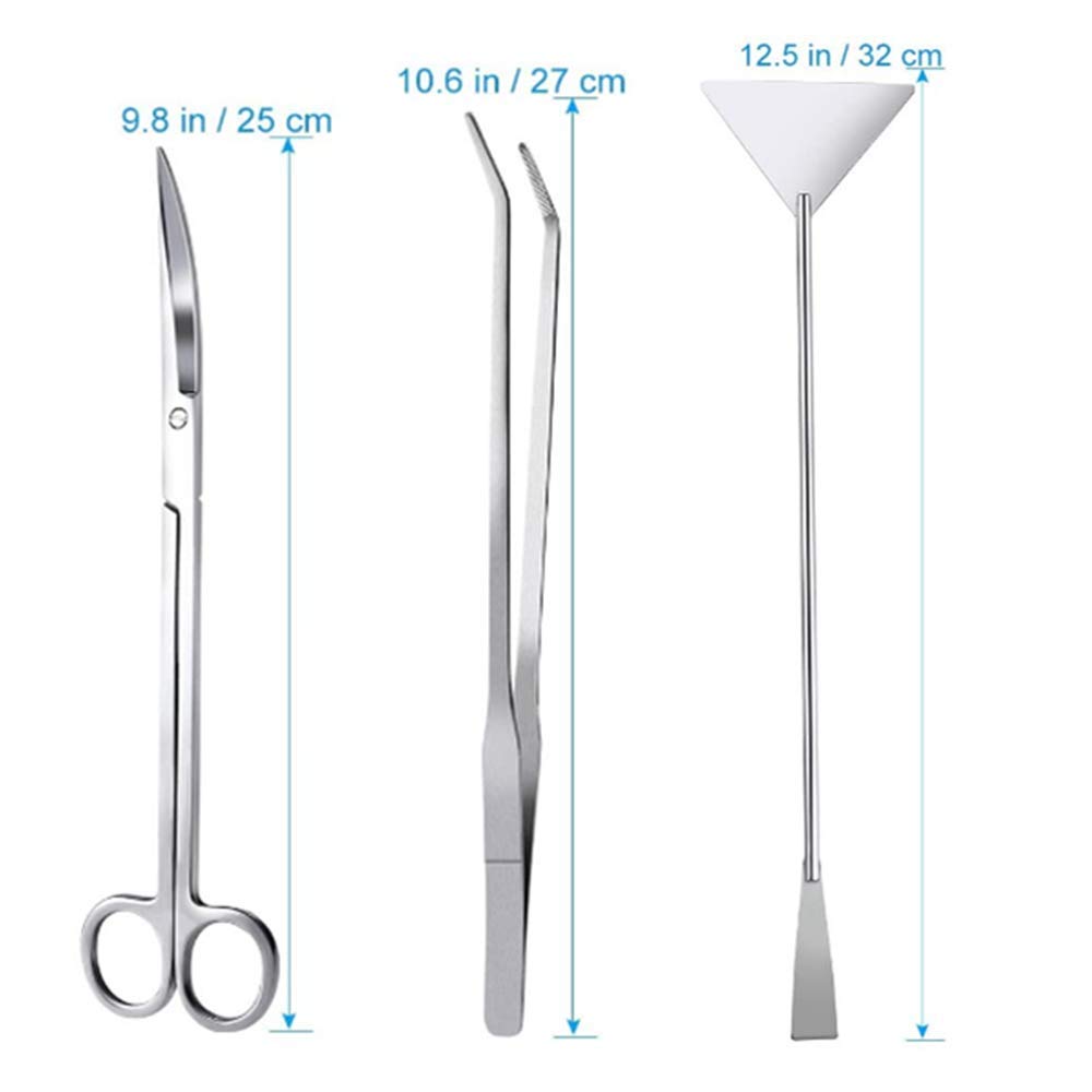 水草用トリミング用具:カーブハサミ25cm、カーブピンセット27cm、サンドフラッター32cm。合計3点セット。