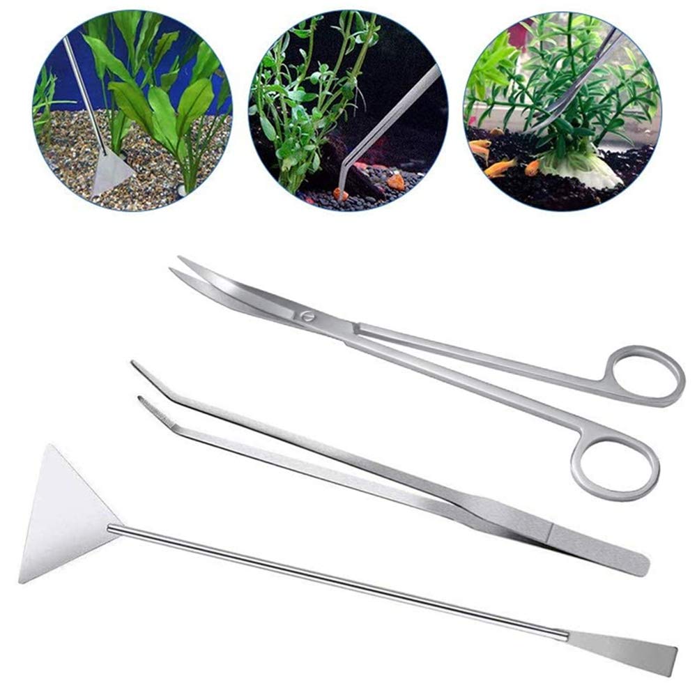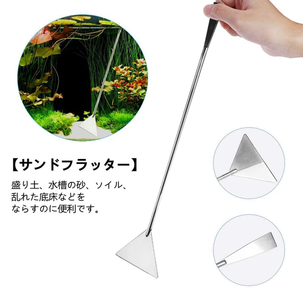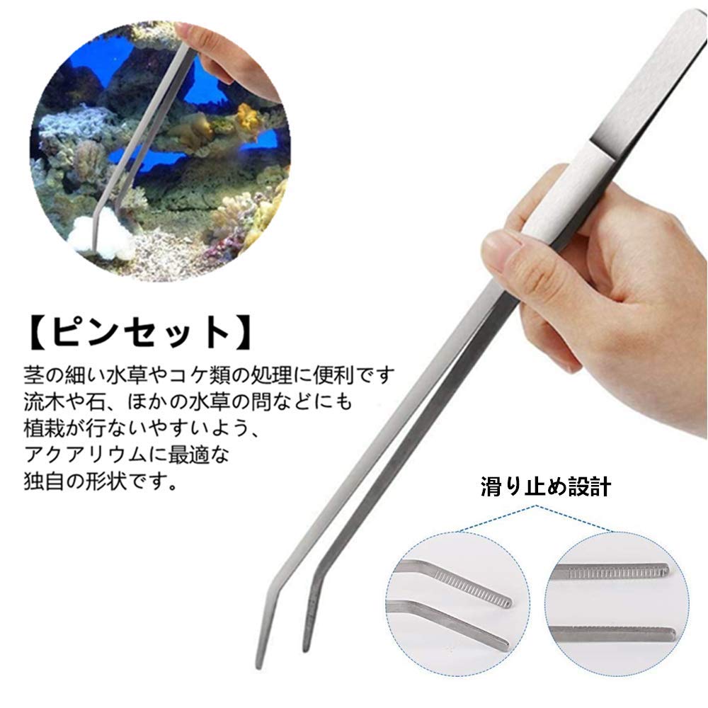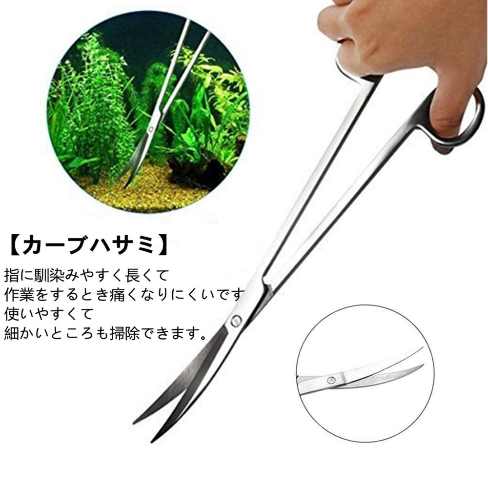 水草トリミングセット カーブハサミ カーブピンセット サンドフラッター 3点セット ステンレススチール製 実用 便利 多機能 水槽管理 水草植栽 水族館用 収納バッグ付き