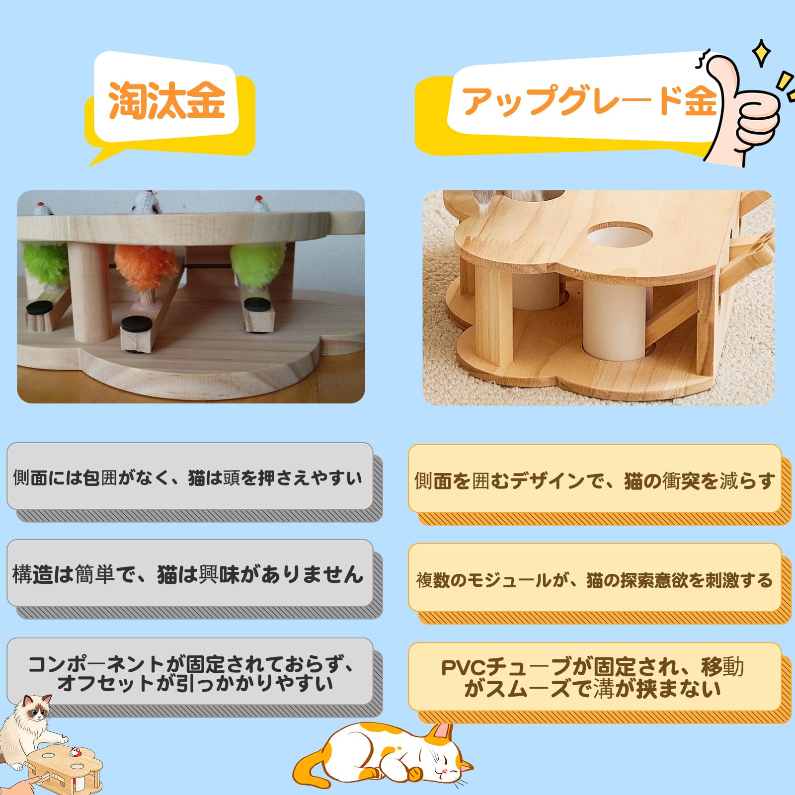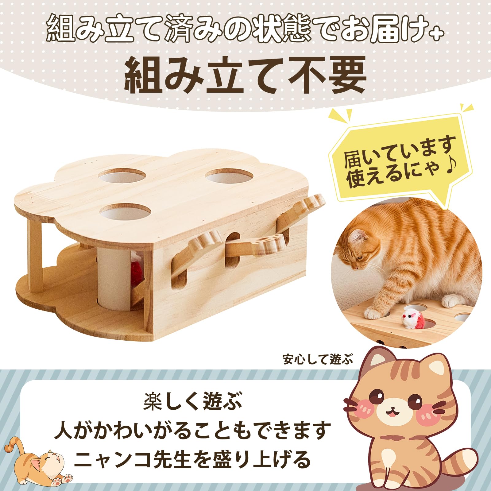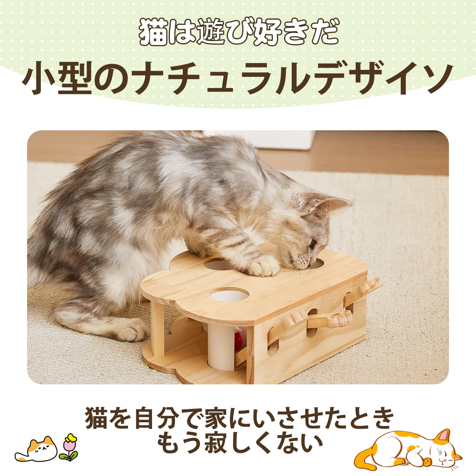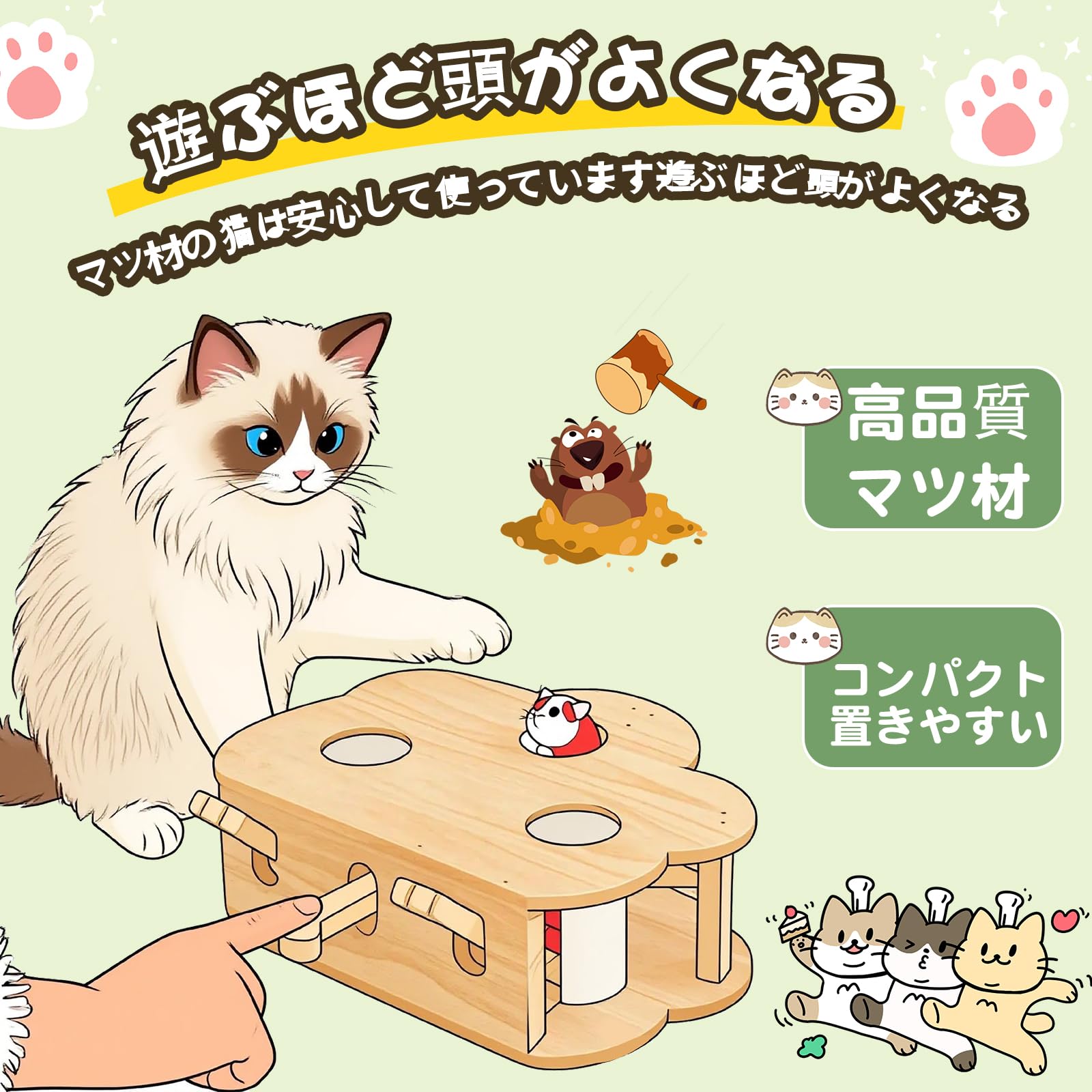 猫のおもちゃ 一人遊び 自動もぐらたたきゲーム - 動くネズミ & 回転ねこじゃらし付き, 子猫・成猫兼用 知育玩具 (木製 吊り下げ式, 運動不足解消,)