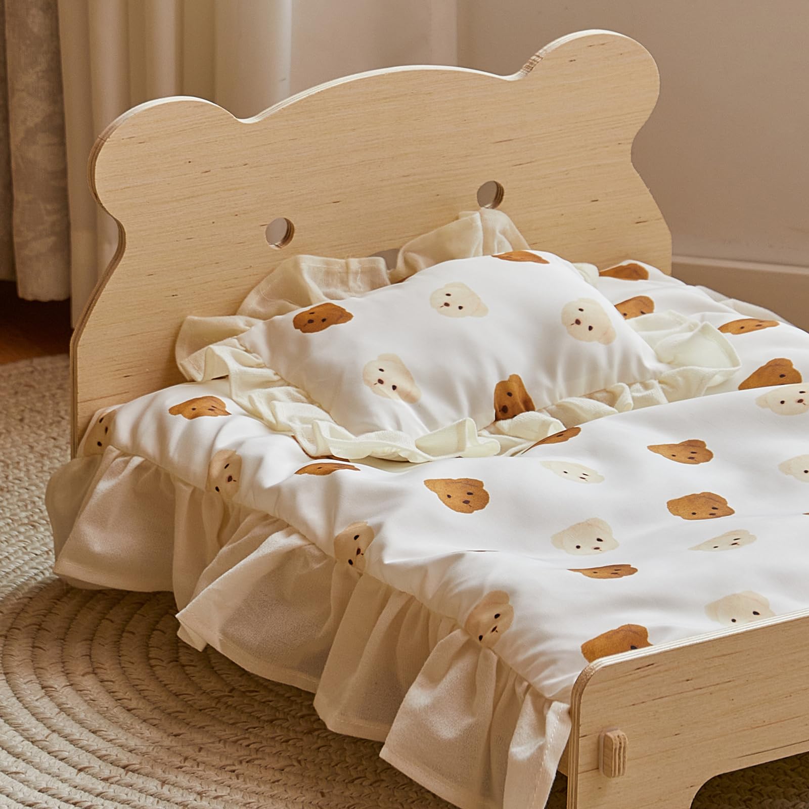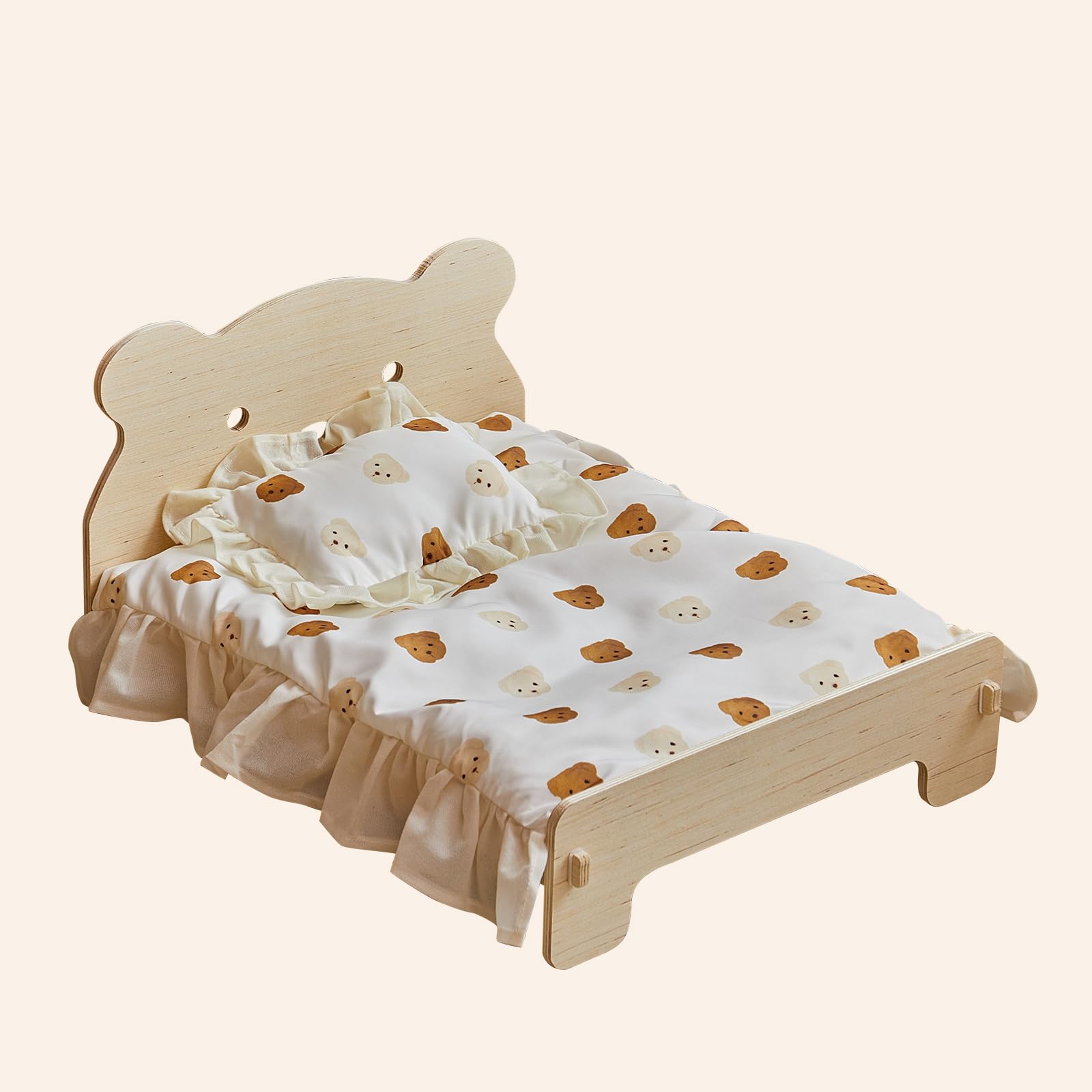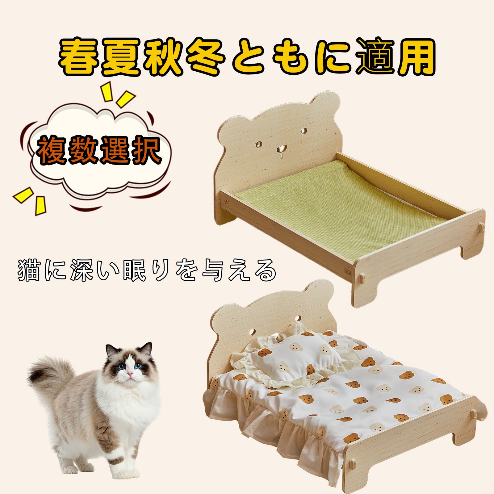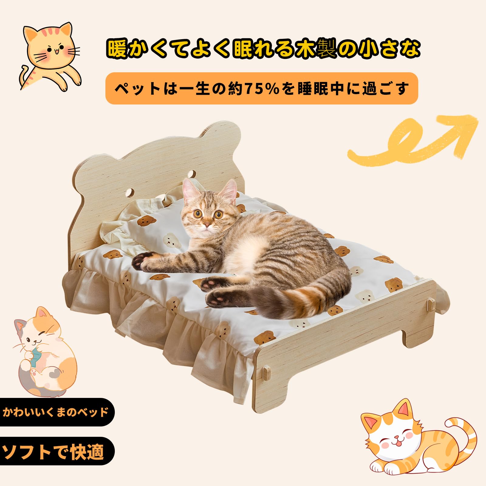 爪研ぎ機能付き猫用ベッド&ハンモック(木製小熊デザイン/洗える) ペット快適寝床、リラックスソファー兼用。小型犬対応室内用コンパクトベット、省スペースフローリング設置可能。冬暖夏涼通気性 撥水加工頑丈安定構造。北欧風モダンな猫用品・犬グッズ、キャットタワー兼ペットハウスとしてリビング寝室に調和。すのこマットレス付き洗濯可能、対策済み。猫の生涯の75%を快適に過ごすための安心睡眠空間 (S)
