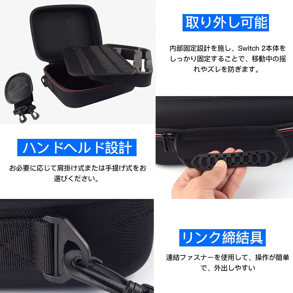 CowGoldChild スイッチ2 ケース Switch 2 ポーチ キャリングケース 収納持ち運び ハード保護ケース カバー Switch 2 配件対応 ナイロン素材 全面保護 黒