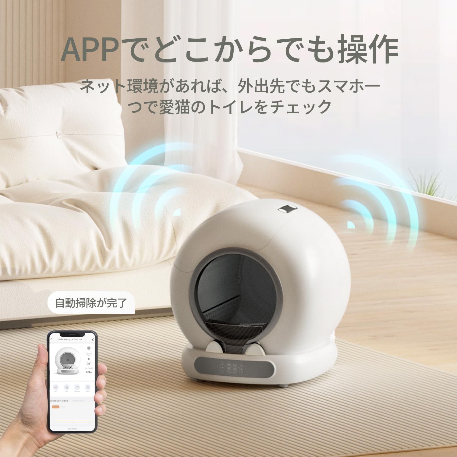 【完全挟み込み防止】猫 トイレ 自動トイレ オシッコが漏れない 猫自動トイレ 開封後にすぐ使える 強力脱臭 猫自動トイレ 自動清掃 掃除簡単 スマホ管理 センサー付き 全自動猫トイレ お留守番対策 遠隔操作 専用APP IOS/Android対応 猫用トイレ 大容量 多頭飼い対応 お手入れ簡単 日本語説明書付き