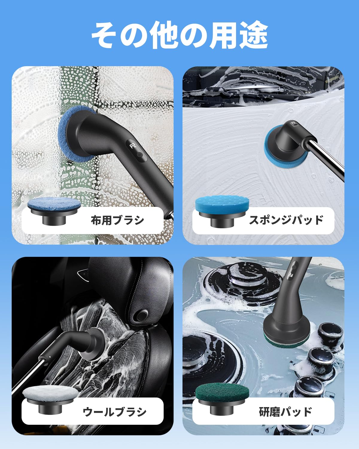 【2026 IPX8防水】 お風呂掃除 ブラシ バスポリッシャー 電動お掃除ブラシ コードレス USB Type-C充電式 8種類替えブラシ 伸縮可能 長さ調節 2段階回転速度 高速回転 軽量 静音 90分連続使用 浴室 浴槽 床 窓 玄関 車磨き 年末大掃除 日本語説明書付き
