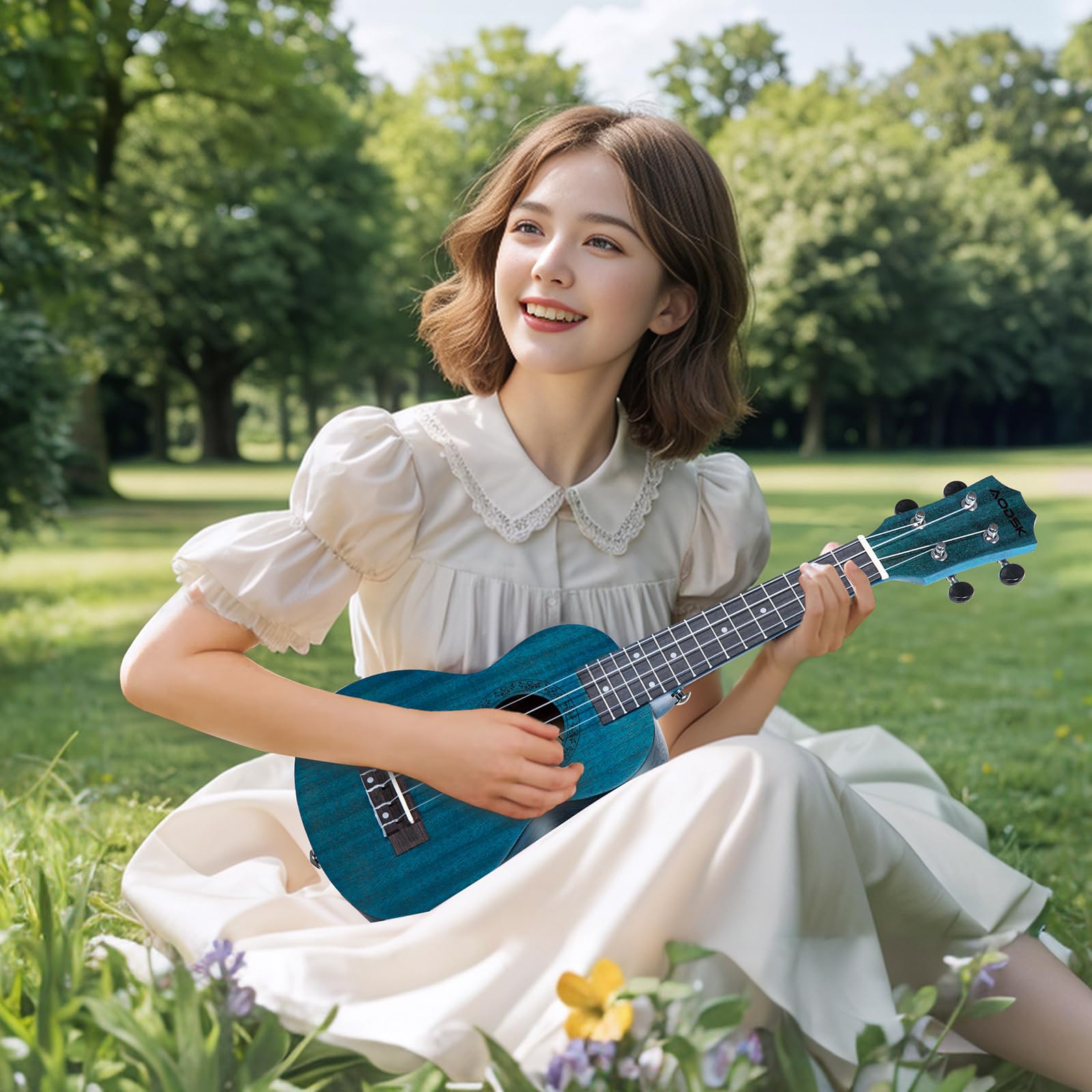 AODSK 初心者向けウクレレ スターターバンドルキット 無料のギグバッグストラップ付き プロフェッショナルアコースティックウクレレ 4弦木製ハワイアンウケ 子供用 学生 スターターキット (AUS-P06 サペレブルーソプラノ)