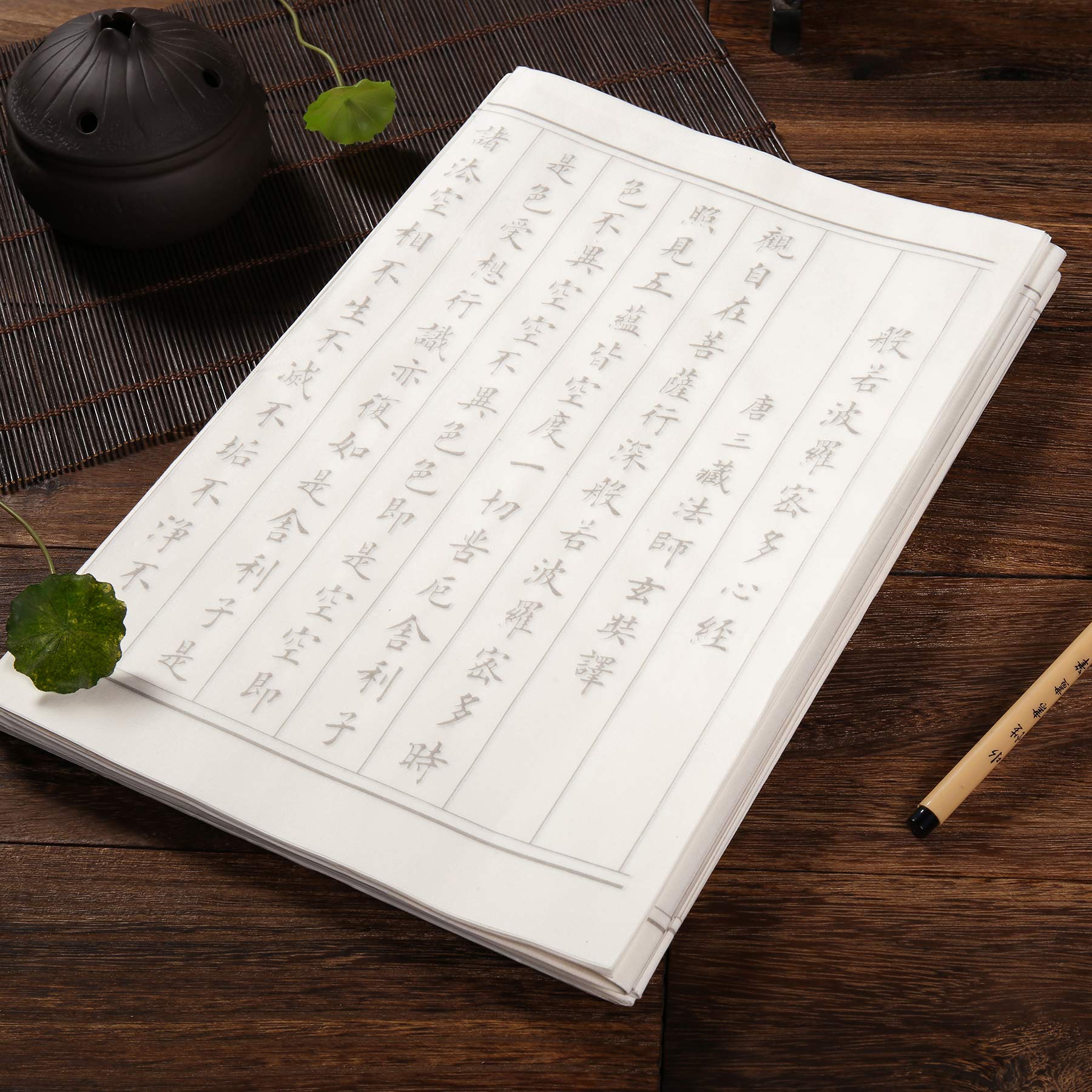 般若心経 写経用紙セット(60枚入り写経紙+筆ペン) なぞり書き 練習用 手本付き 大きいサイズ67cm×35cm 行幅ー⒉5cm
