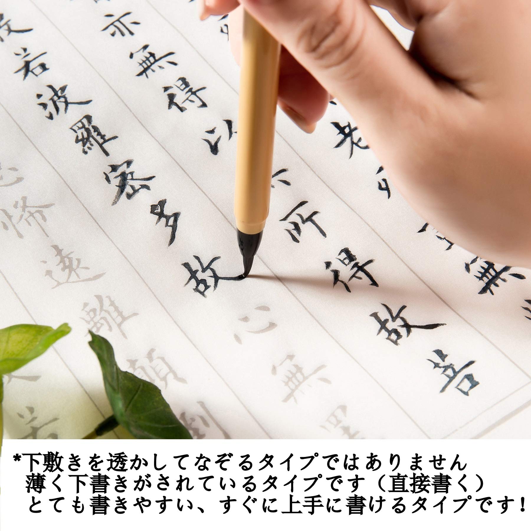 般若心経 写経用紙セット(20枚入り写経紙+筆ペン) なぞり書き 手本付き 大きいサイズ67cm×35cm 行幅ー⒉5cm (練習用)