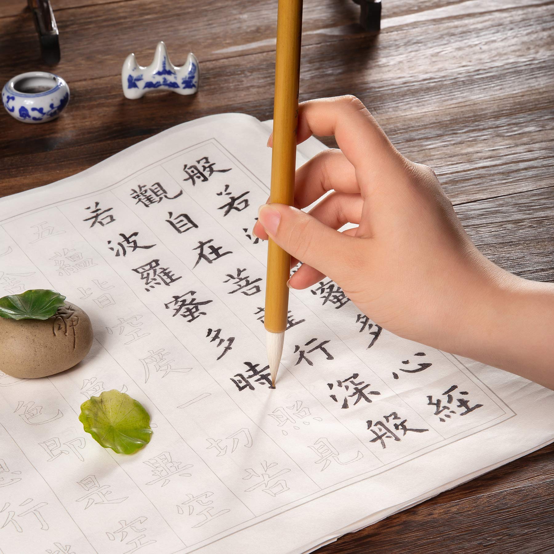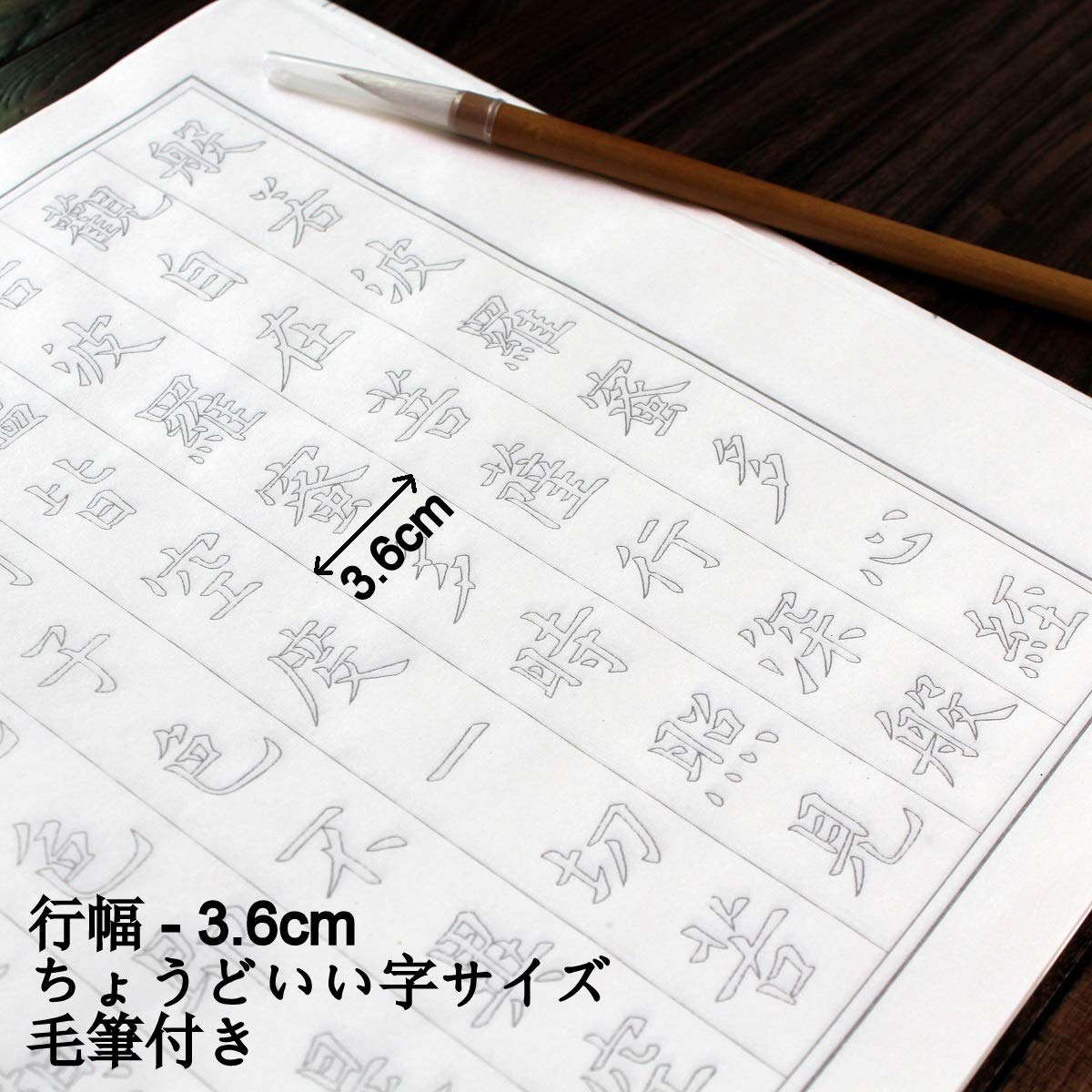 般若心経 写経用紙セット(60枚入り写経紙+筆ペン) なぞり書き 練習用 手本付き 大きいサイズ67cm×35cm 行幅ー⒉5cm