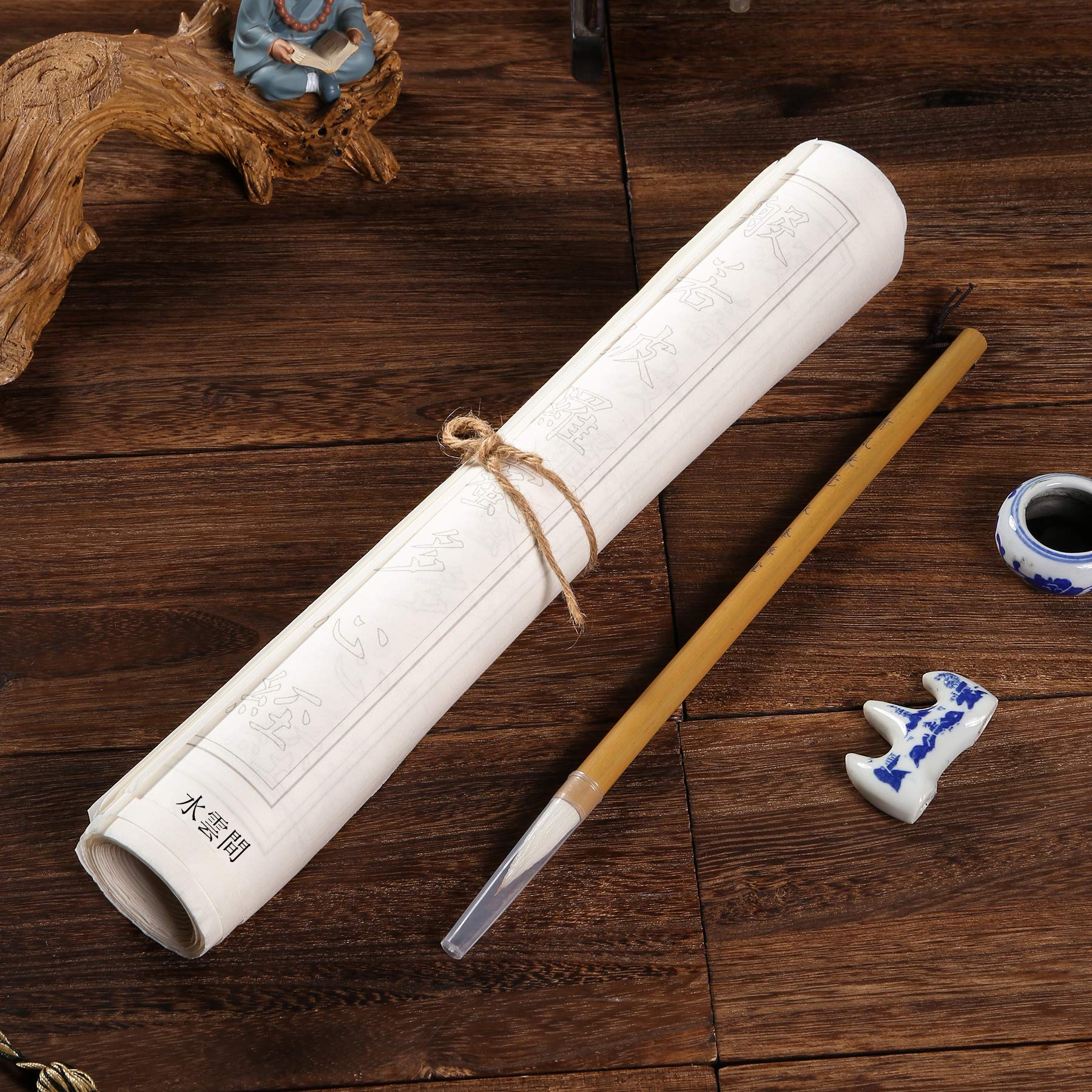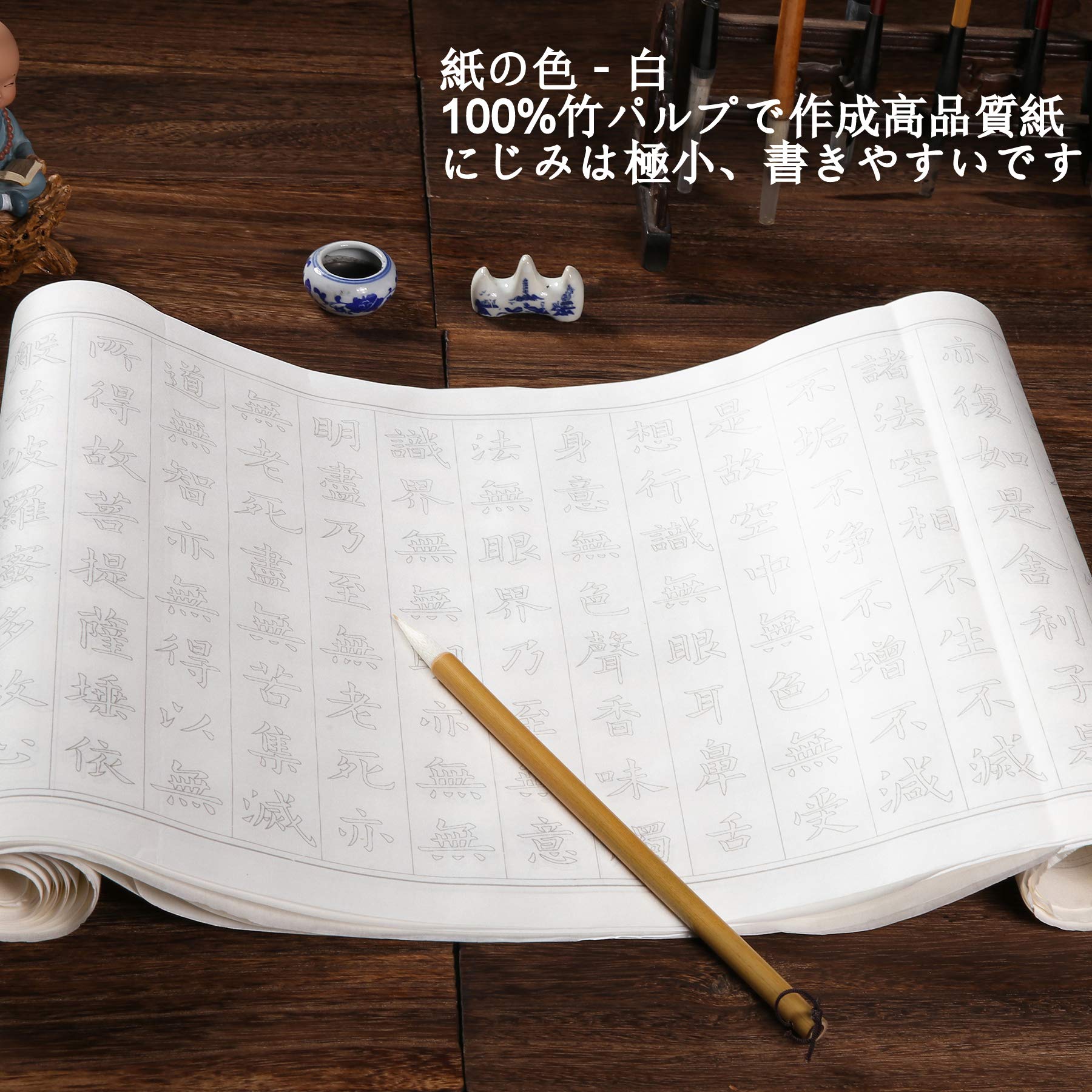 般若心経 写経用紙セット 大字 (10枚入り写経紙+毛筆) なぞり書き 大きいサイズ34cm×138cm 行幅ー3.6cm