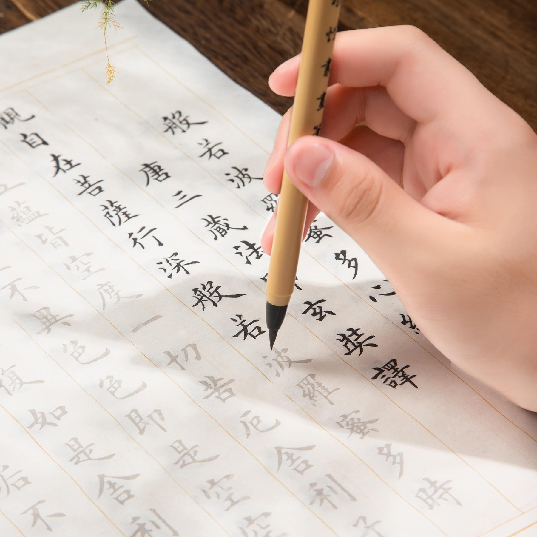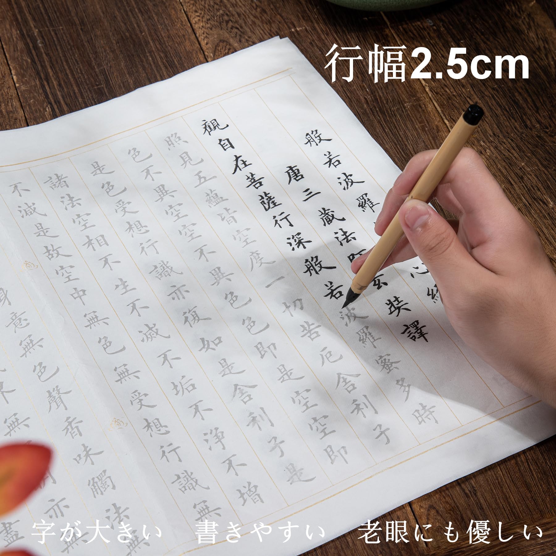 般若心経 写経用紙セット(60枚入り写経紙+筆ペン) なぞり書き 練習用 手本付き 大きいサイズ67cm×35cm 行幅ー⒉5cm