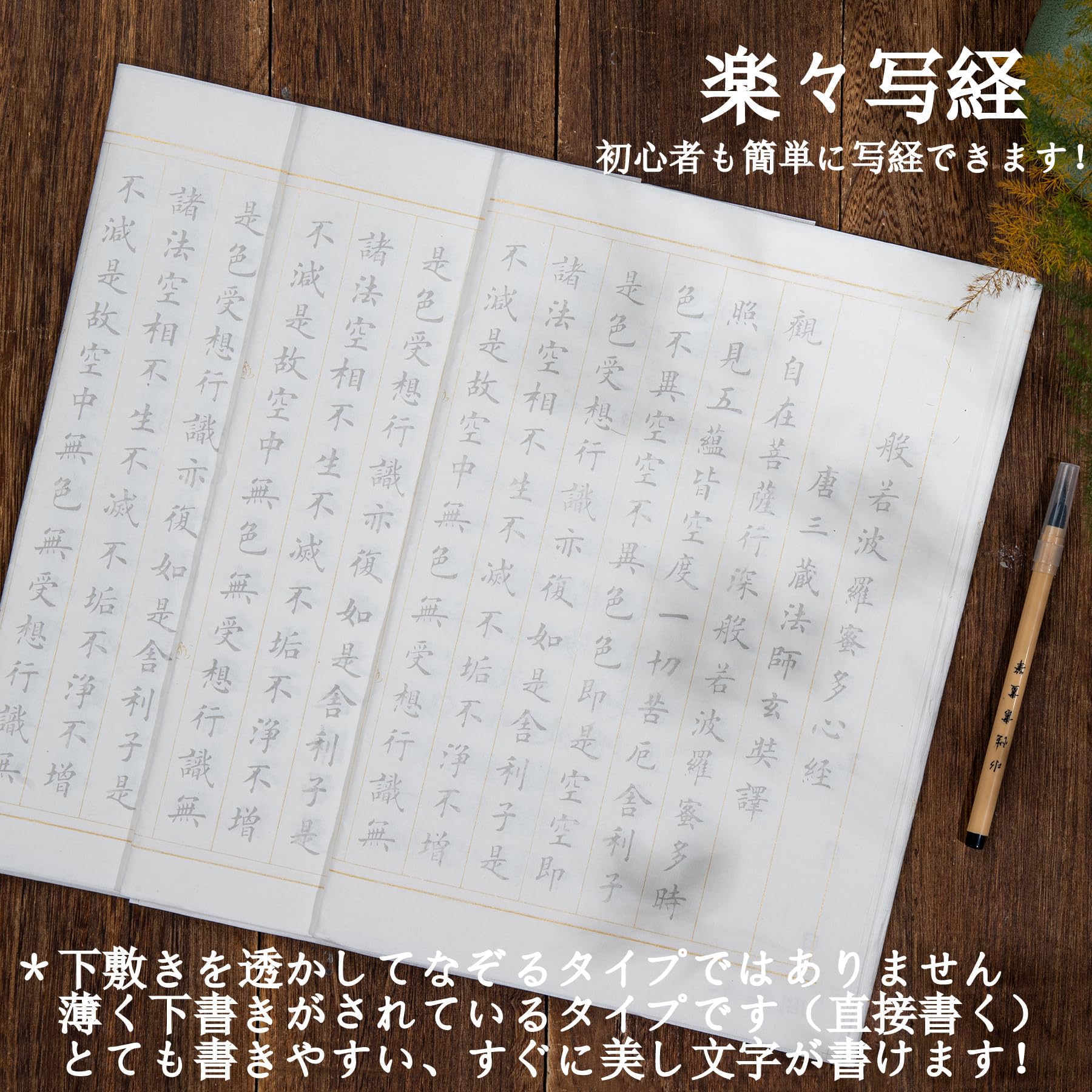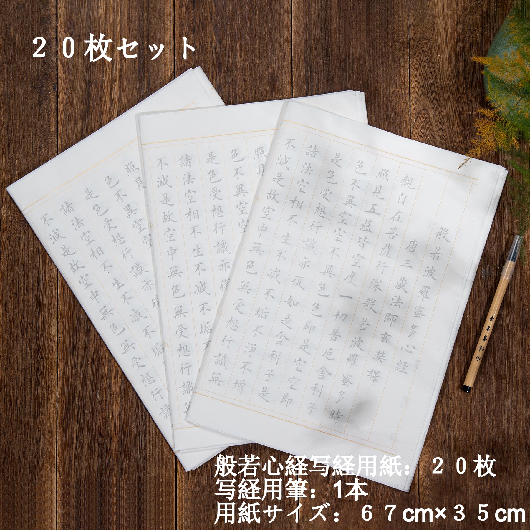 般若心経 写経用紙セット(20枚入り写経紙+筆ペン) なぞり書き 手本付き 大きいサイズ67cm×35cm 行幅ー⒉5cm (練習用)