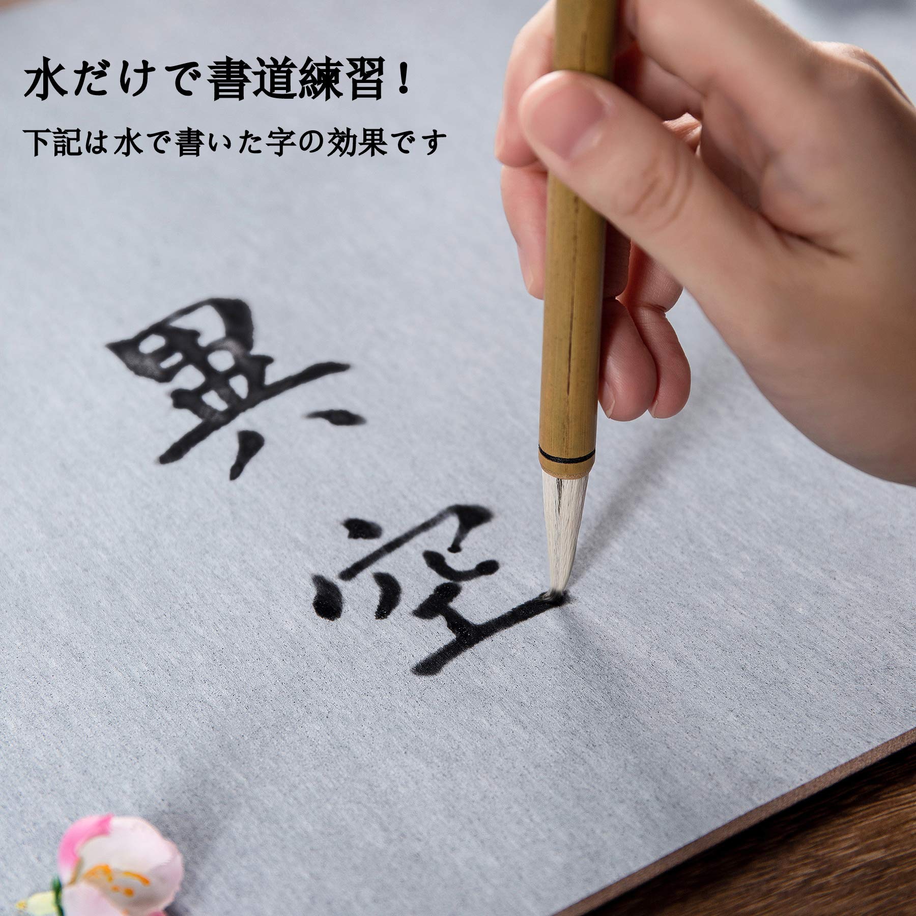 水書き 書道セット : 墨汁 不要 水だけで書ける 不思議 な 習字 練習 用具 水書布 6 枚セット( 書き初め の 練習 に最適 )筆と水皿付き