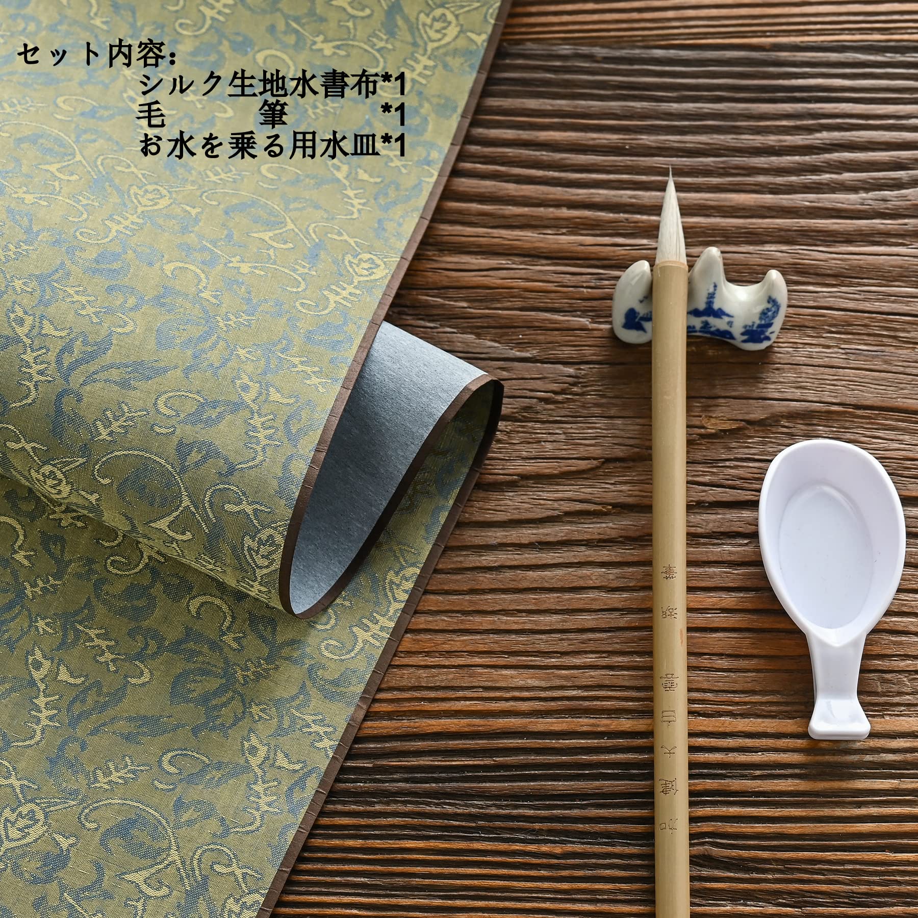 水書クロスセット、水で書ける!繰り返し使える書道練習セット ◆ セット内容 水書クロス7枚: ▸ 永字八法:楷書「永」字分解教学 ▸はじめての教育漢字 お手本なぞりシート ▸ 基本点画マスターシート:横・縦・払いの描紅指導 ▸ 創作用布:24格米字格とブランク水書布各1枚 ▸筆圧変化マスターシート(切り込み起筆から蔵鋒収筆まで 筆の立体操作を習得) ▸らせん運筆トレーニングシート(筆先のコントロールを鍛える渦巻き状デザイン) ◆ 付属品 天然竹筆:天然竹+羊の毛で混合筆頭 白陶風水皿:プラスティック製、10cm、二役デザイン 書道用 水差し&筆置き 巻き癖対策専用ストッパー2本:水書き布がピンと張る仕組み ◆ 特長 - 墨不要:水のみで1000回以上練習可能 - 和紙風合い:本格的な筆の運びを再現 - 収納便利:丸めて収納、とても便利です。巻いた後の長さは34 cm(A 4用紙の長さは30 cm程度) ◆ こんな方に ✓ 小学生の書写宿題対策 ✓ 手軽に書道を始めたい大人 ✓ おしゃれな知育玩具を探す保護者