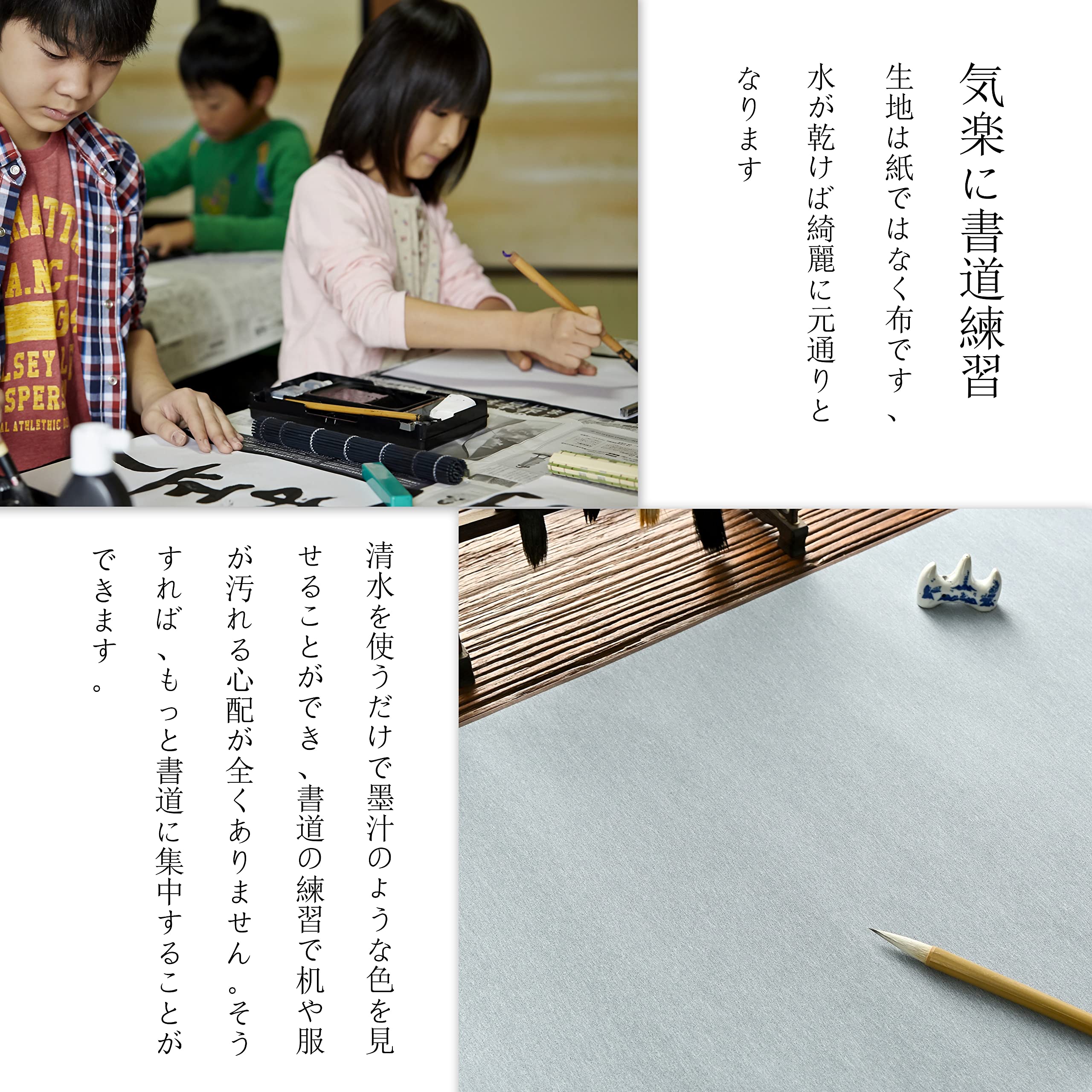水書き 書道セット 墨汁 不要 水だけで書ける 不思議 な 習字 練習 用具 水書布 大きいサイズ( 書き初め の 練習 に最適 )37cm×85cm 筆と水皿付き