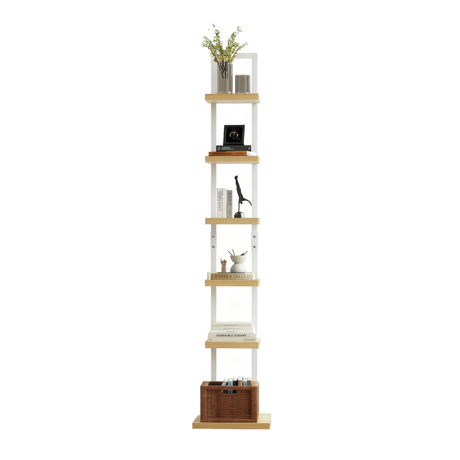 WoRefCra 本棚 ブックタワー スリム 6段 木製棚板 スチールフレーム 収納ラック オープンラック 省スペース 組立簡単 白いフレーム