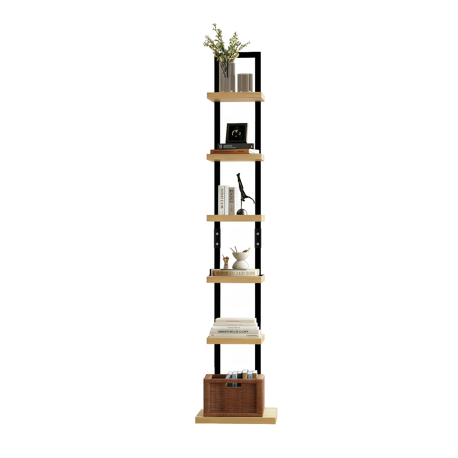 WoRefCra 本棚 ブックタワー スリム 6段 木製棚板 スチールフレーム 収納ラック オープンラック 省スペース 組立簡単 黒いフレーム