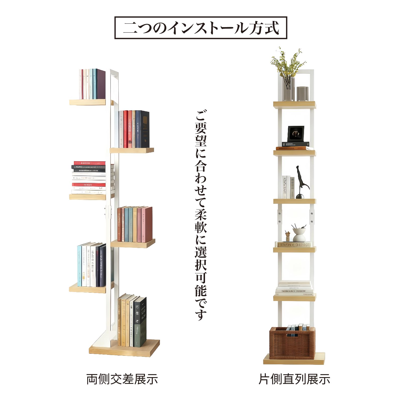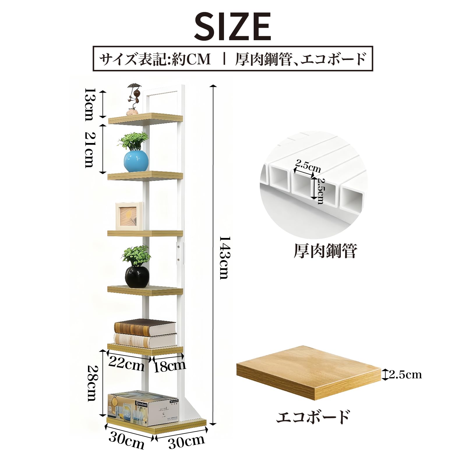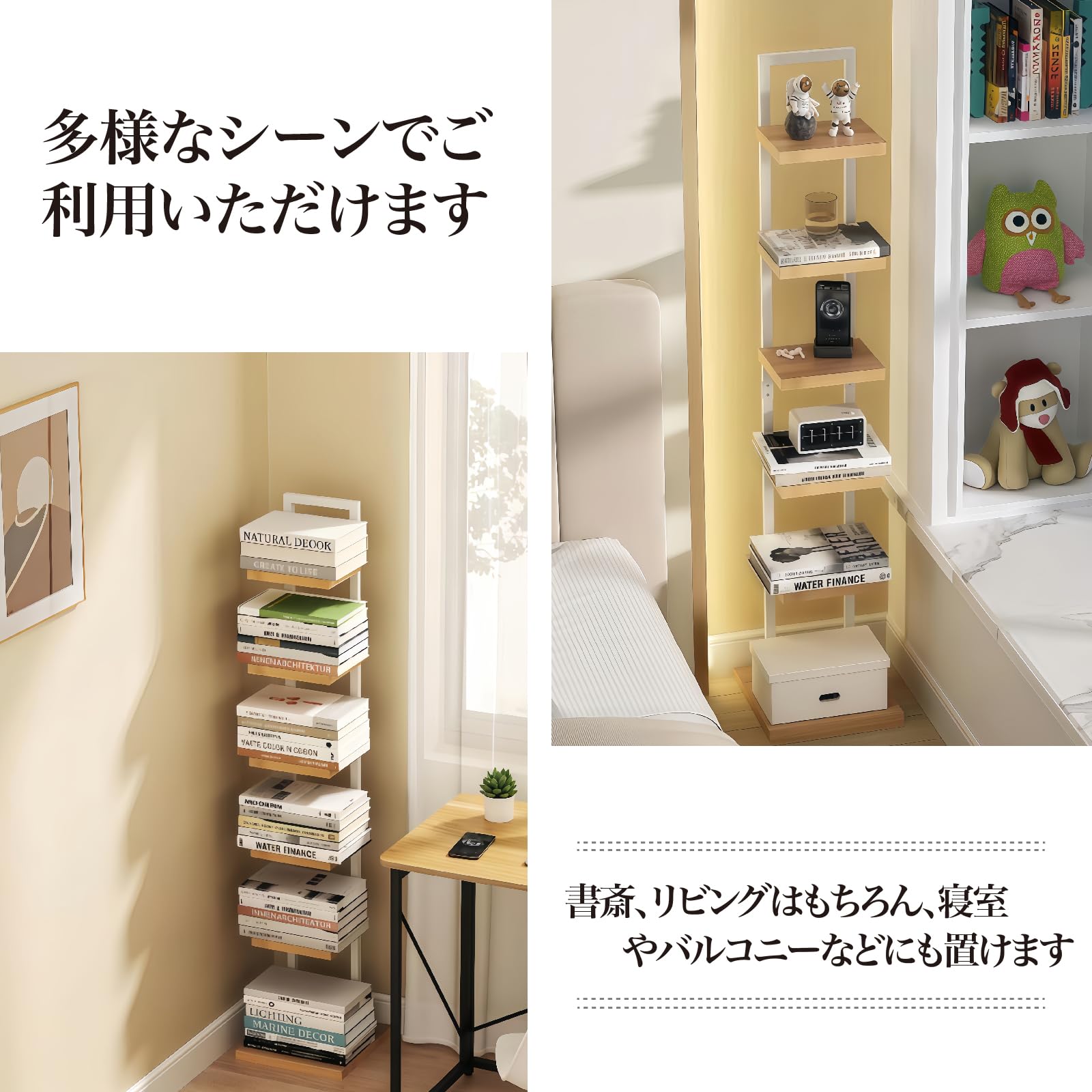 WoRefCra 本棚 ブックタワー スリム 6段 木製棚板 スチールフレーム 収納ラック オープンラック 省スペース 組立簡単 白いフレーム
