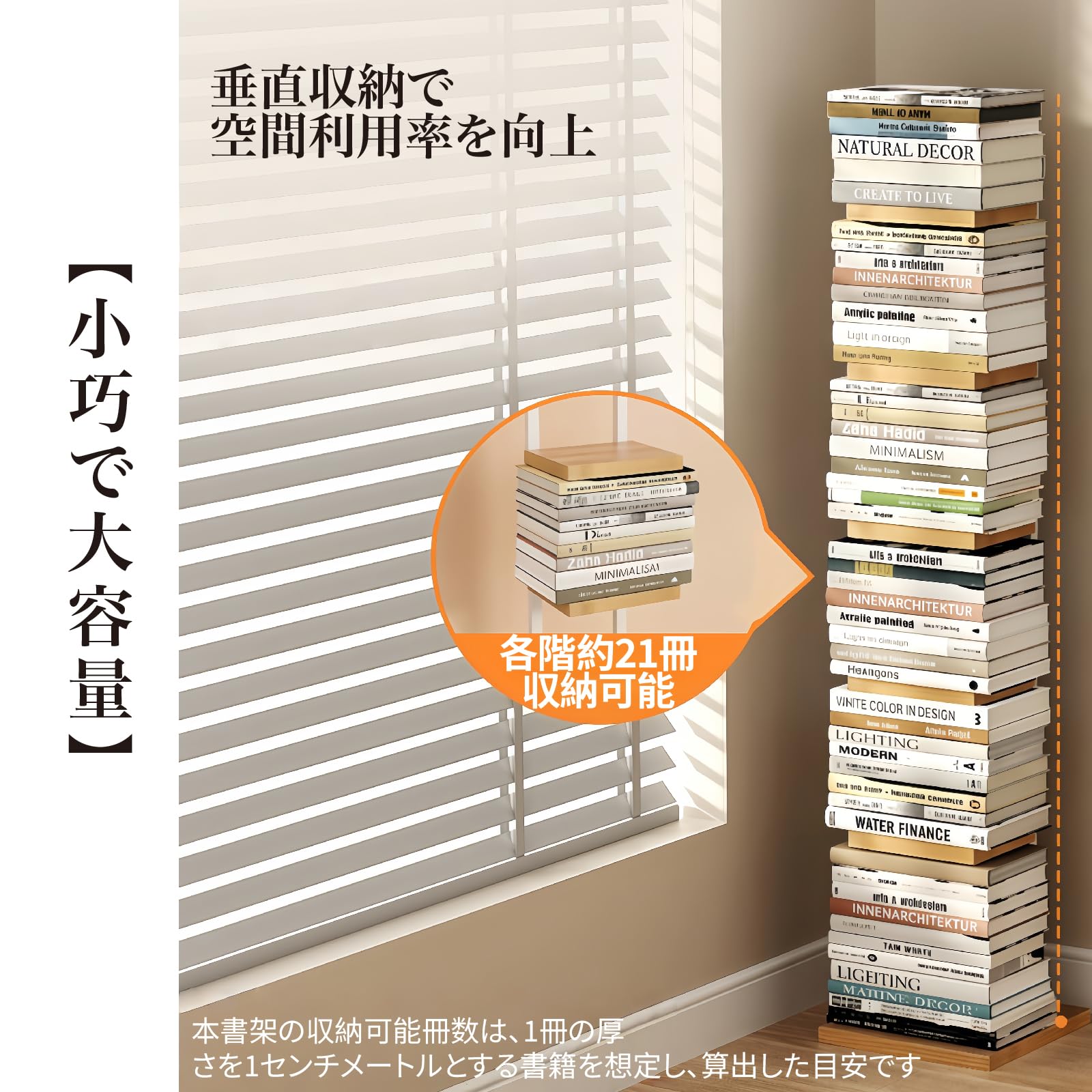 APPOLYN本棚 回転式本棚 4段 直径40CM*高さ128CM A4紙が入る高さ コミックラック 漫画 絵本棚 収納棚 原木色