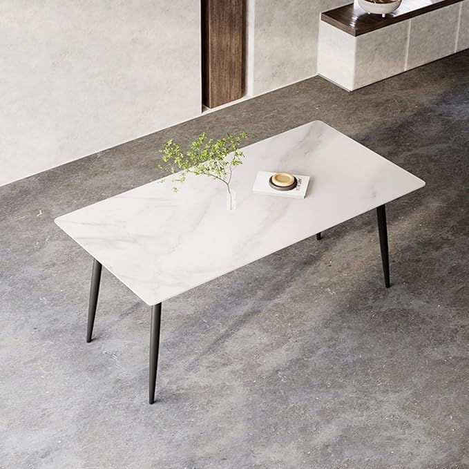 Murongun ダイニングテーブル 4人用 長方形 大理石風【食卓 テーブル 幅160cm 単品】耐熱・傷・汚れに強い 簡単清掃 組立簡単 スノーマウンテンホワイト