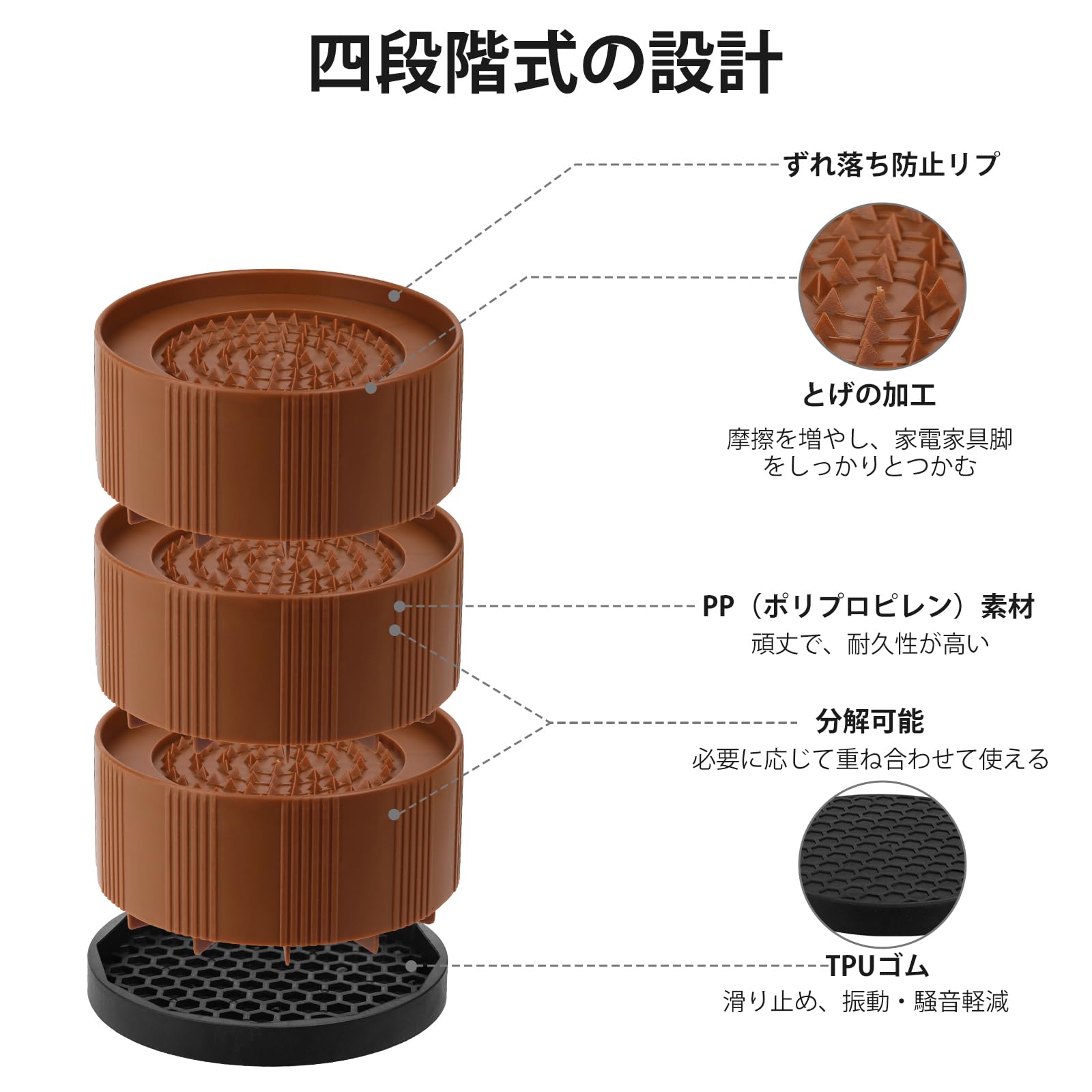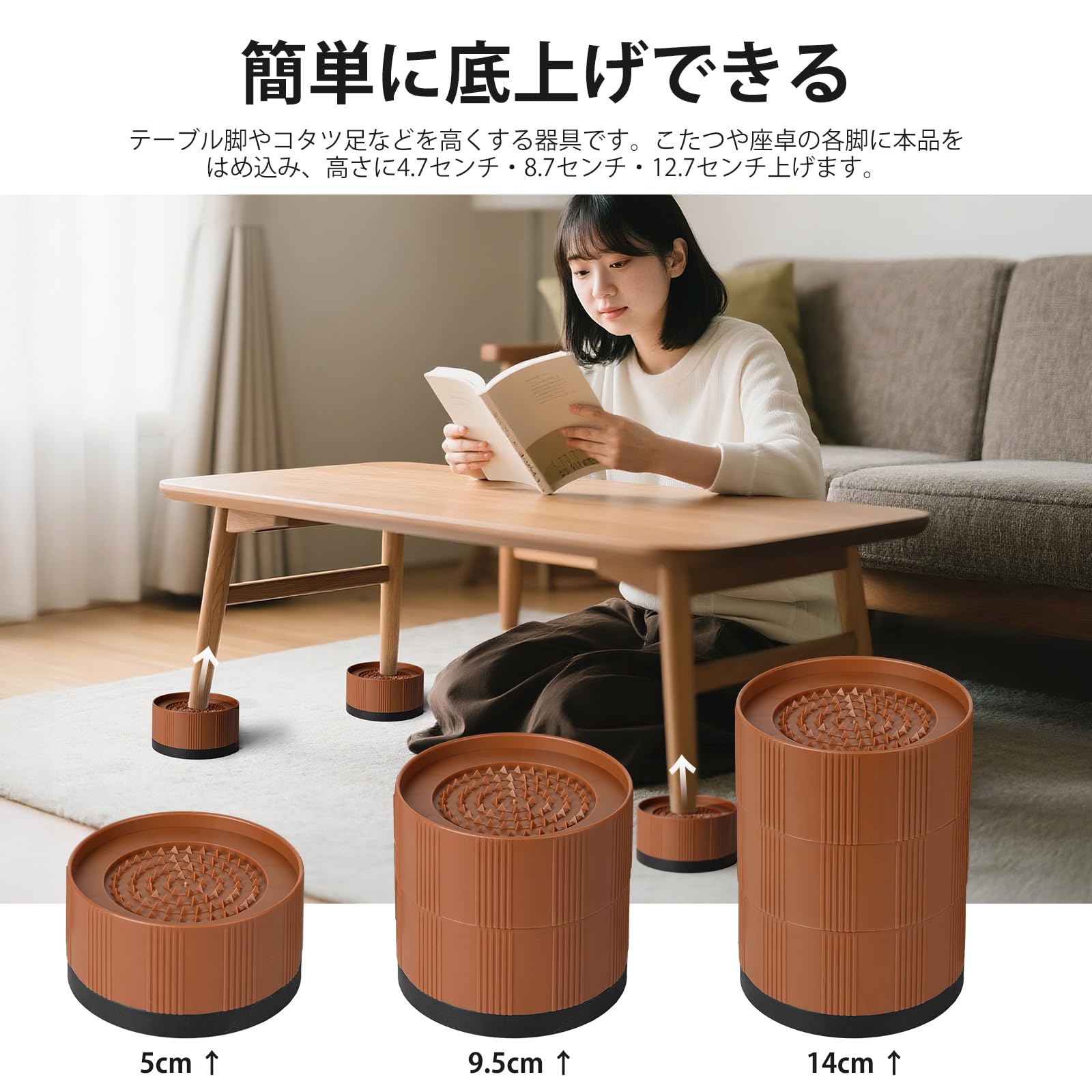 Umelee テーブル 高さ調整 机 14cm上げる テーブル 脚 継ぎ足し 4段階式 10.4cm大足対応 高さ調節器具 家具・家電向け 滑り止め 耐荷重1000kg 4個セット ブラウン